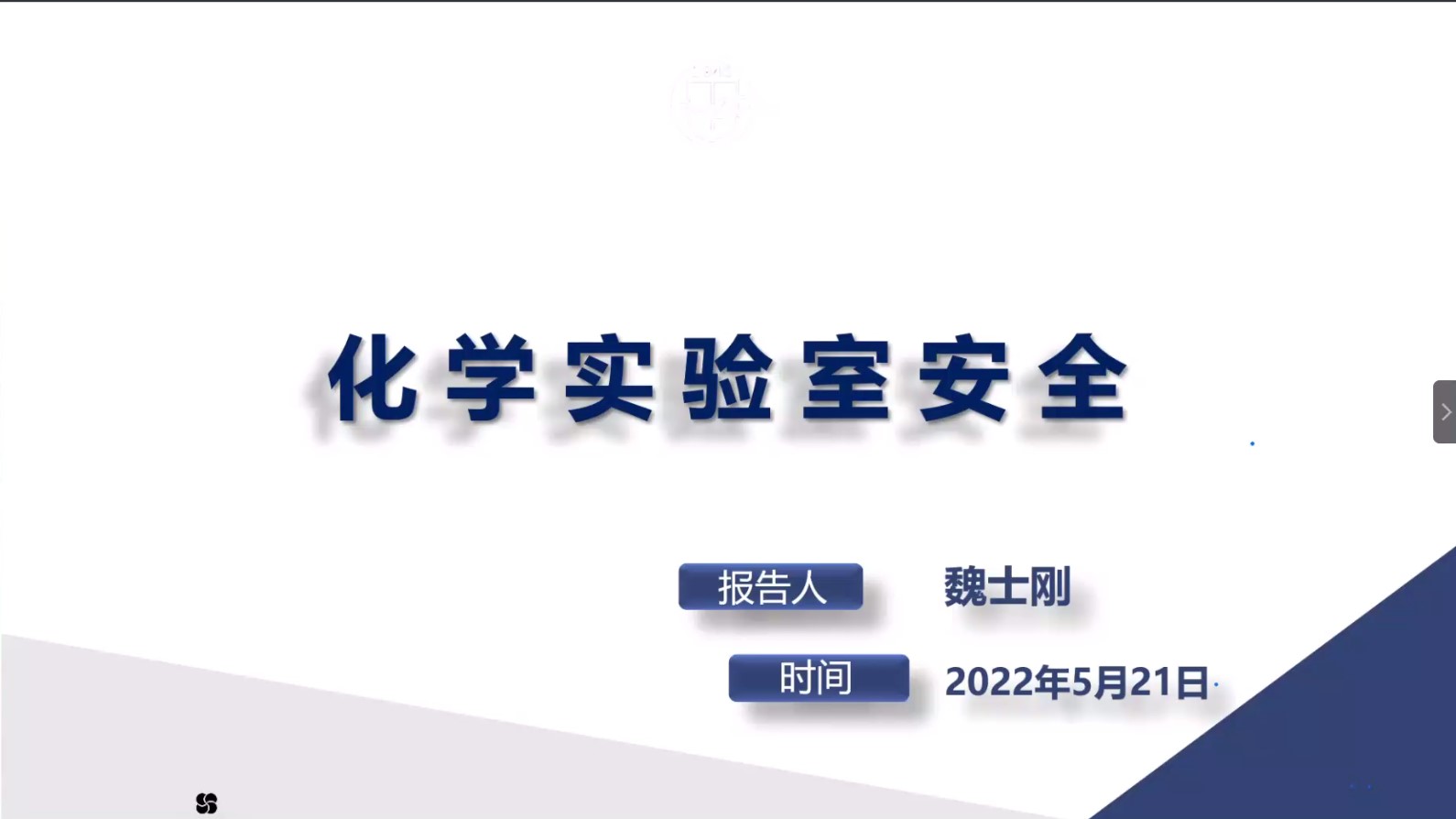 魏士刚从化学实验室安全通则、危险化学品的安全管理、气体钢瓶的安全管理、常用设备的安全管理四个方面进行系统性讲解。以实际案例、错误行为、规范操作、安全习惯等多角度展现了实验室安全的重要意义,以期帮助师生在实验室开放初期打破对于科研实验的“陌生感”,提高对生命健康的“安全感”。