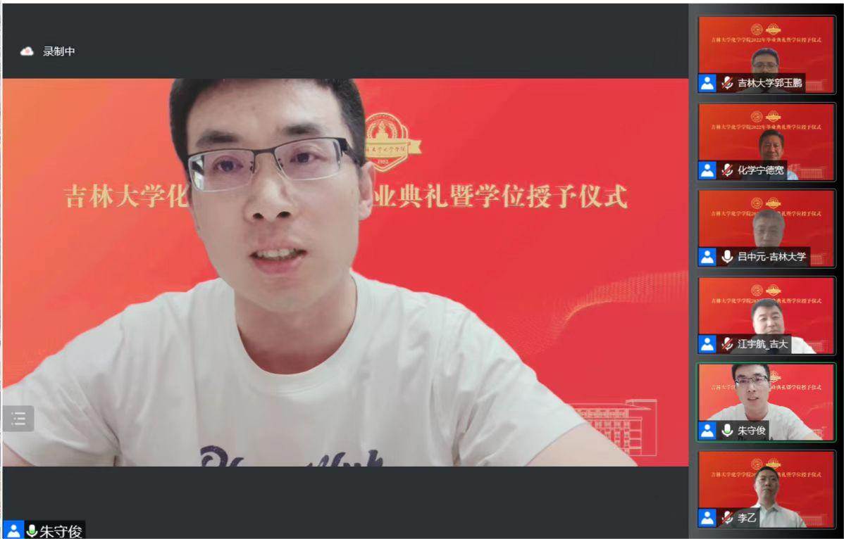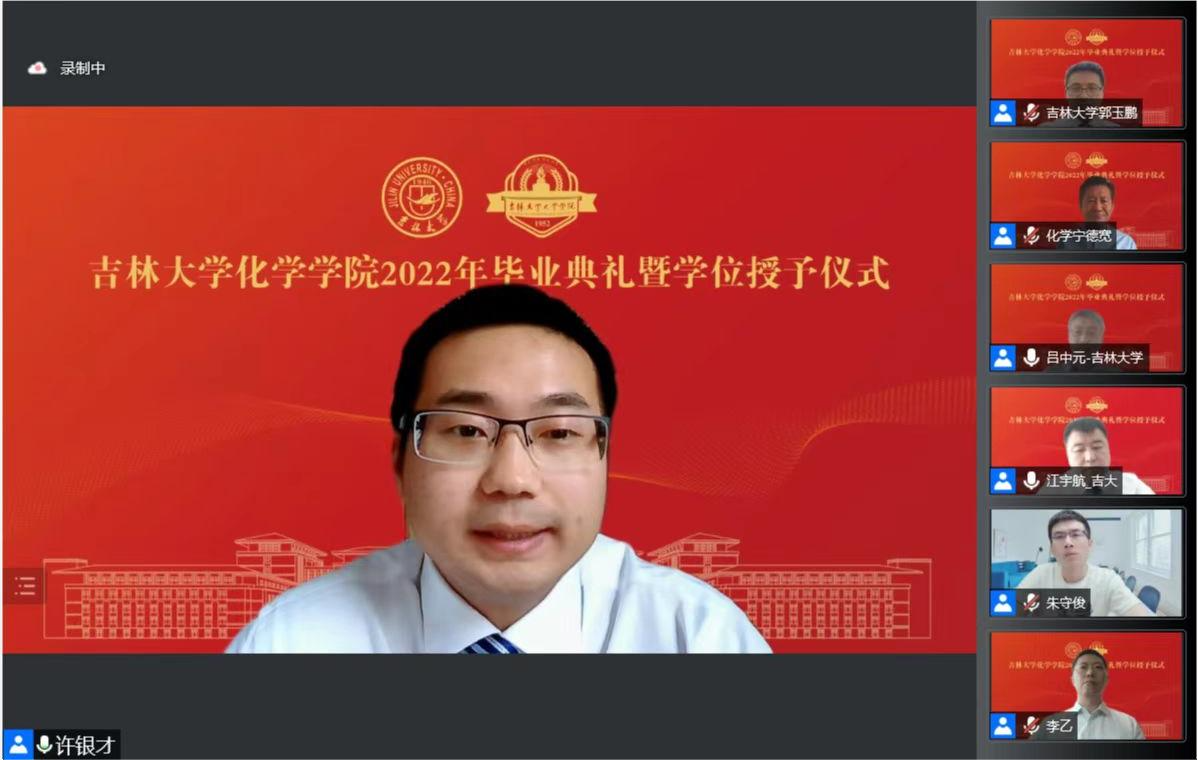 的培养、老师的教导、同学的帮助。他说,吉大化学四年的求学生涯,不仅夯实了同学们的化学学科知识基础,更教会同学们做一名胸怀天下、励志报国的人,一名有所爱、敢担当的新时代青年,一名勇于探索、敢于创新的科研后备军。在未来的路上定会一如既往的传承发扬吉大化学精神,为祖国发展贡献力量。