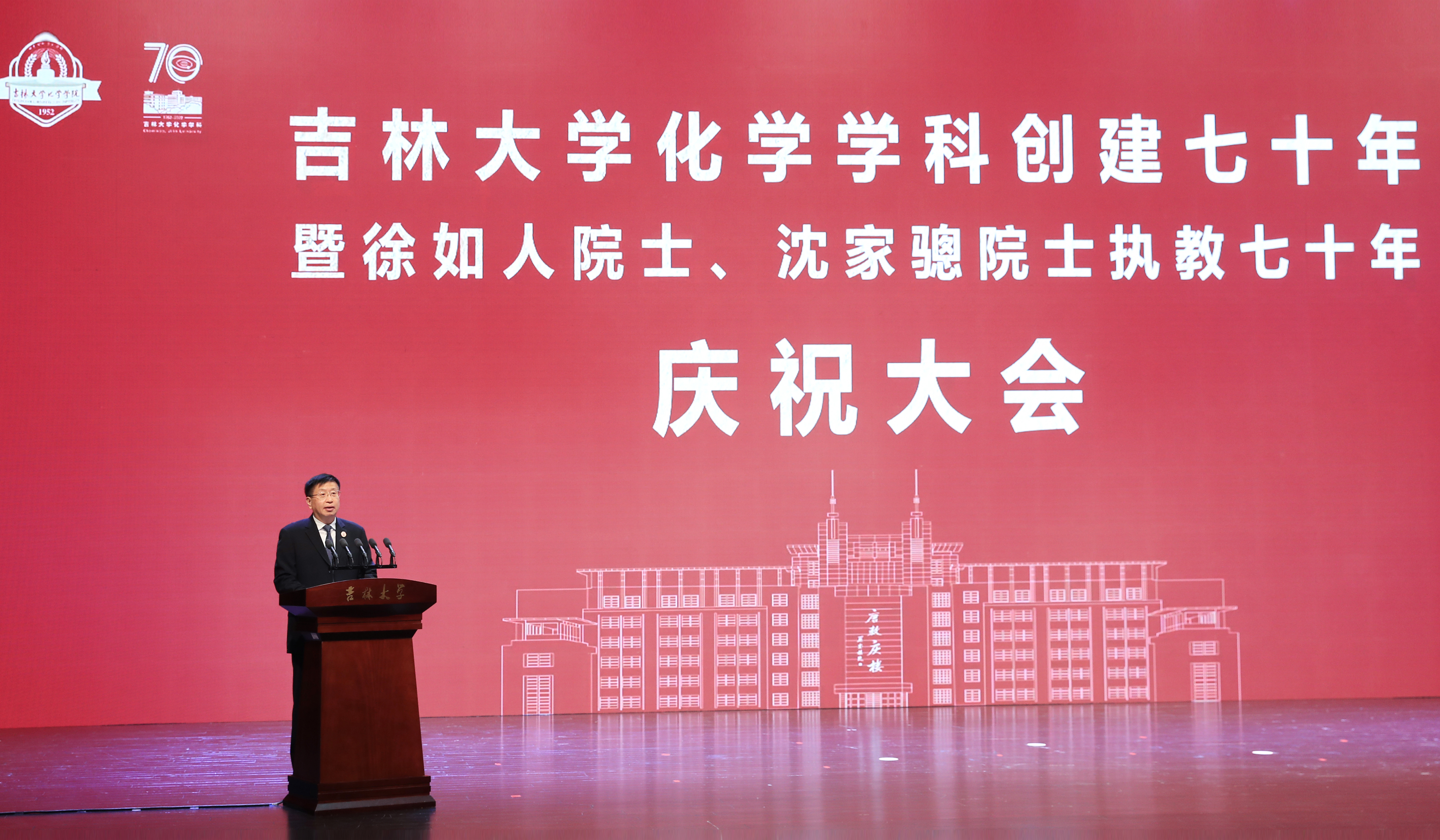 与吉大化学学科为推动基础研究和吉林振兴发展作出的突出贡献。他指出,70年来,吉大化学始终坚持党的领导,坚定社会主义办学方向,紧扣立德树人根本任务,牢记“为党育人、为国育才”的初心使命,一流学科建设令人振奋,人才培养质量稳步提升,科技创新成果不断体现,以徐如人院士、沈家骢院士为代表的一大批教育家无私奉献,辛勤付出,为吉林科教事业发展奠定了深厚而坚实的基础。希望吉大化学牢记习近平总书记教诲,聚力科研攻关,勇攀科技高峰,坚持“四个面向”,聚焦“六新产业”发展和“四新设施”建设,不断提升原始创新能力,助力吉林创新驱动高质量发展,培养更多适应时代要求和社会发展的高端人才。希望同学们传承吉大化学光荣传统,勤奋进取,努力拼搏,争做有理想、敢担当、能吃苦、肯奋斗的新时代好青年。他表示,吉林省政府将一如既往关心支持博彩App