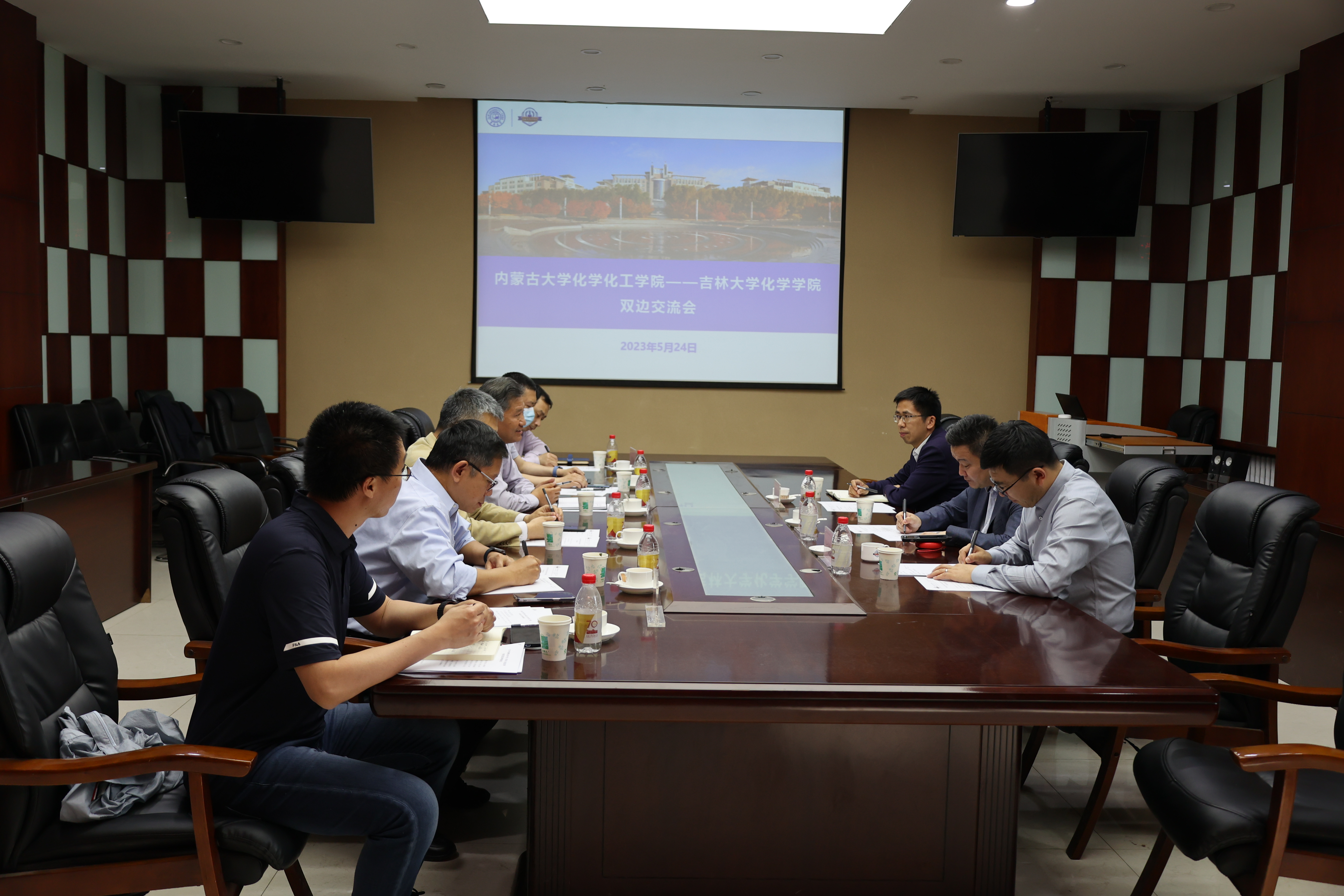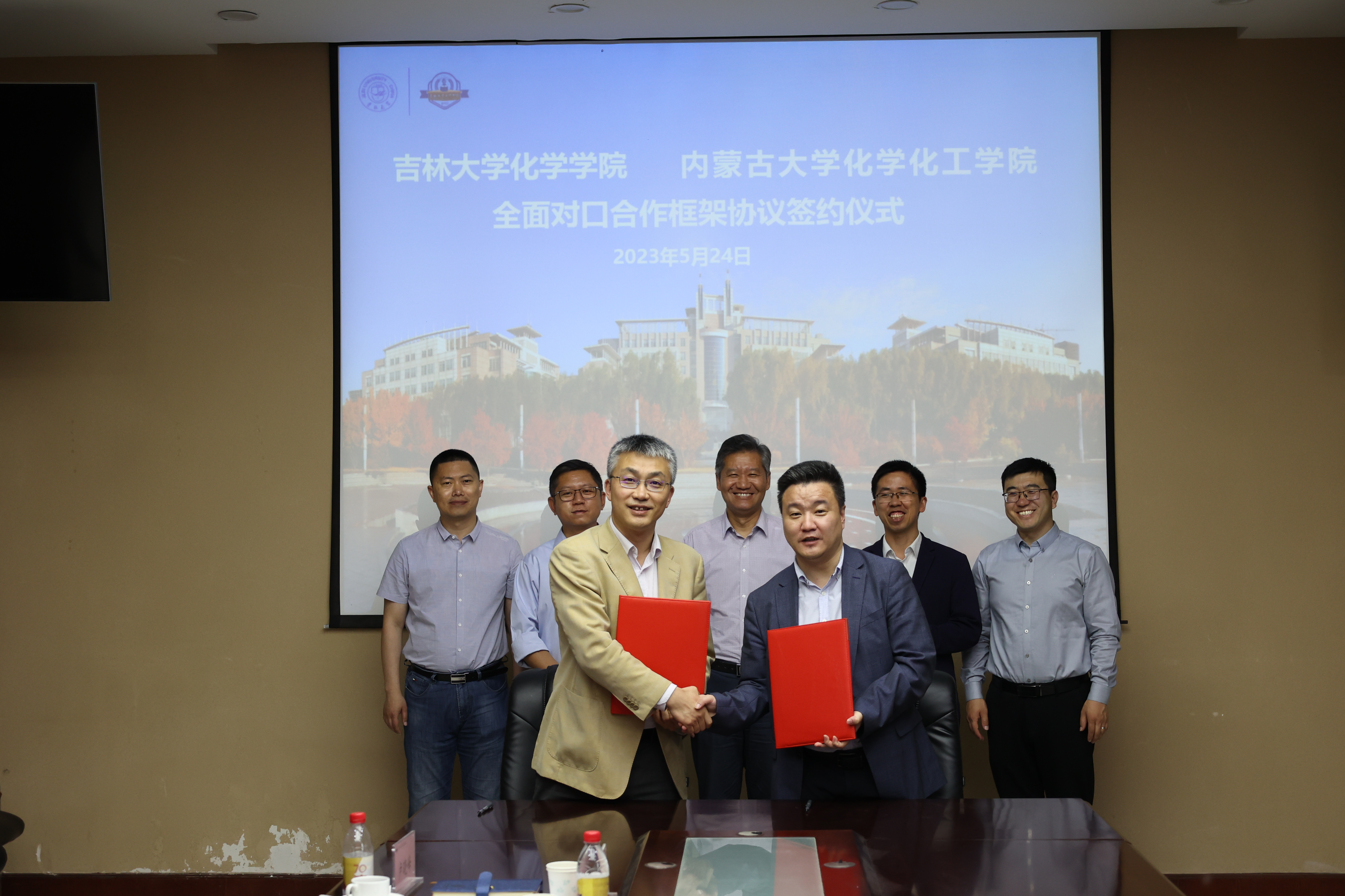 一行来访表示热烈的欢迎。他表示66年前,从吉大化学抽调了部分中青年骨干教师参与了内蒙古大学化学系的组建工作,66年后的今天,双方也将传承老一辈化学人的精神,在党建工作、学科建设、人才培养、科学研究、人才引育、教师访学、实验室建设与运行、学术会议举办等方面建立全方位、深融合的合作机制。