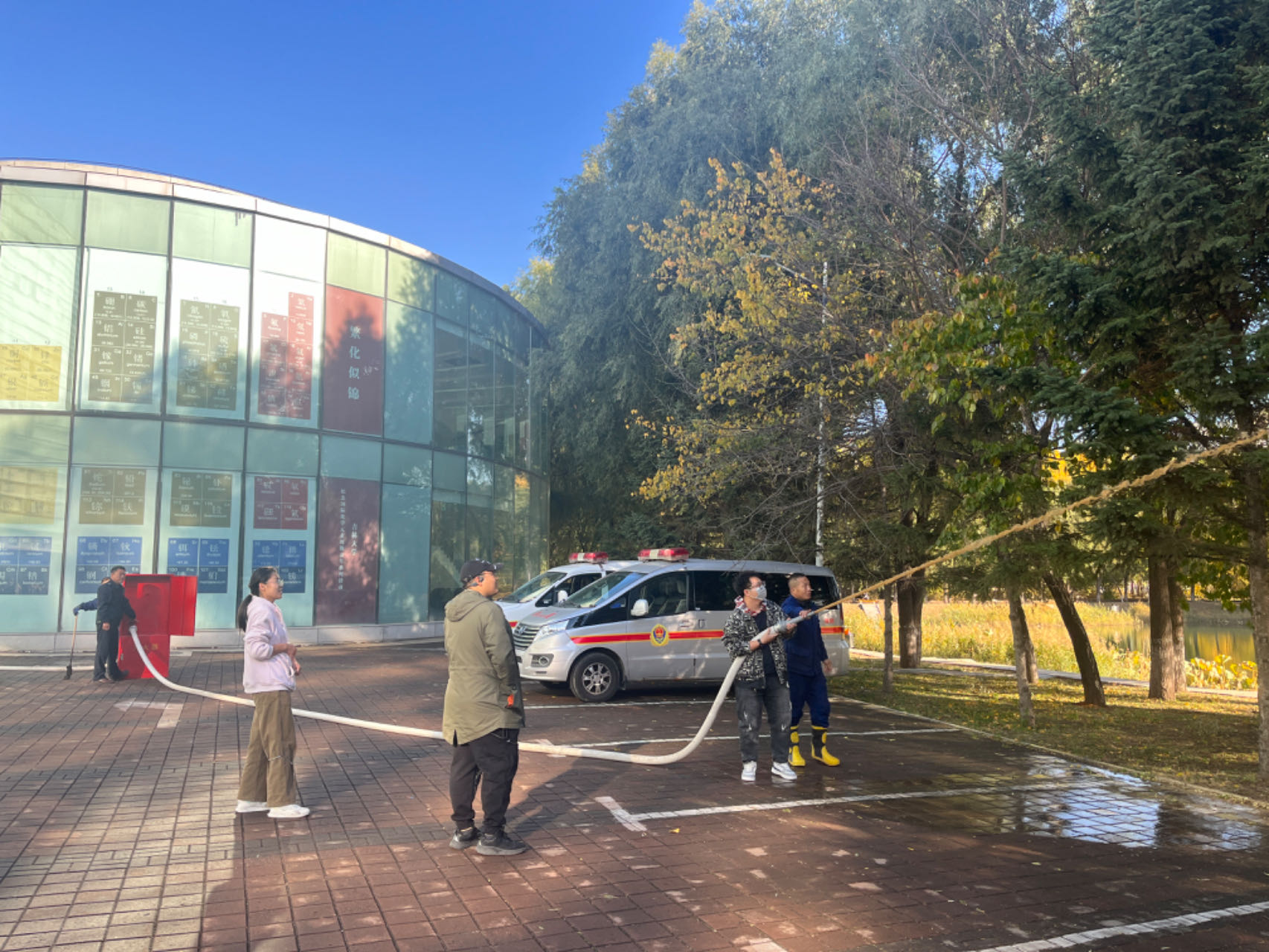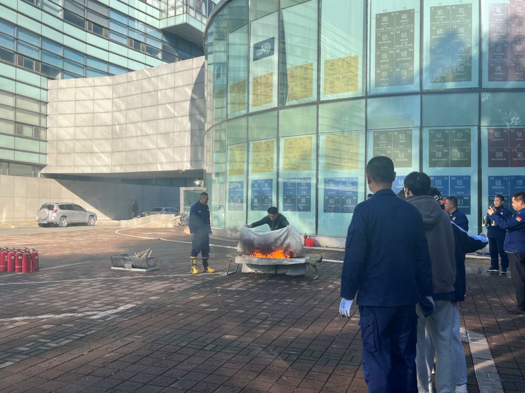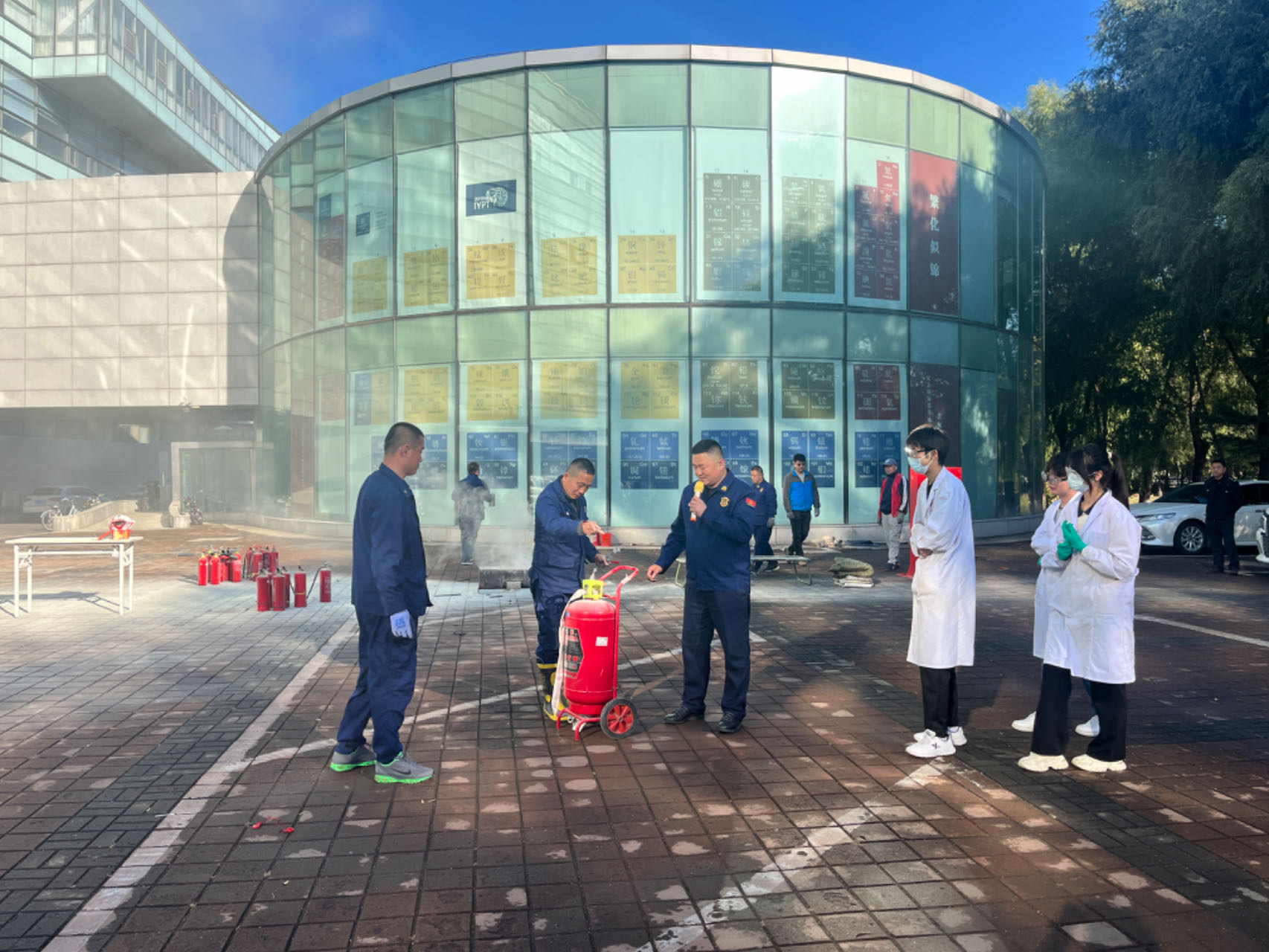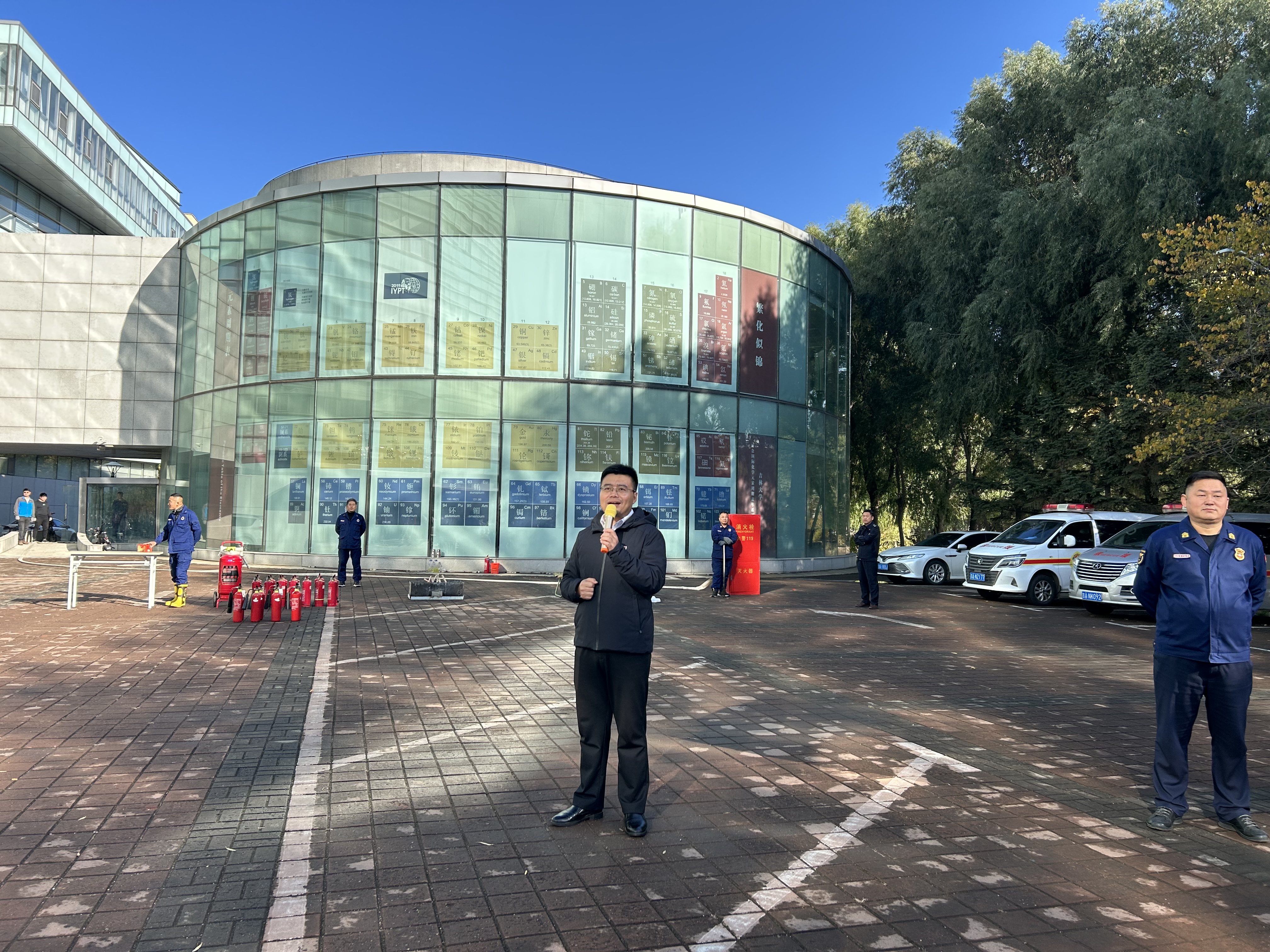 在应急疏散演练环节,演练指挥小组以模拟无机-超分子楼内突发火情为背景,全景演练了突发火情后全楼师生紧急疏散撤离、消防队员灭火等流程。演练过程中,楼内师生疏散过程井然有序,展现了快速响应能力,演练达到了预期目标。