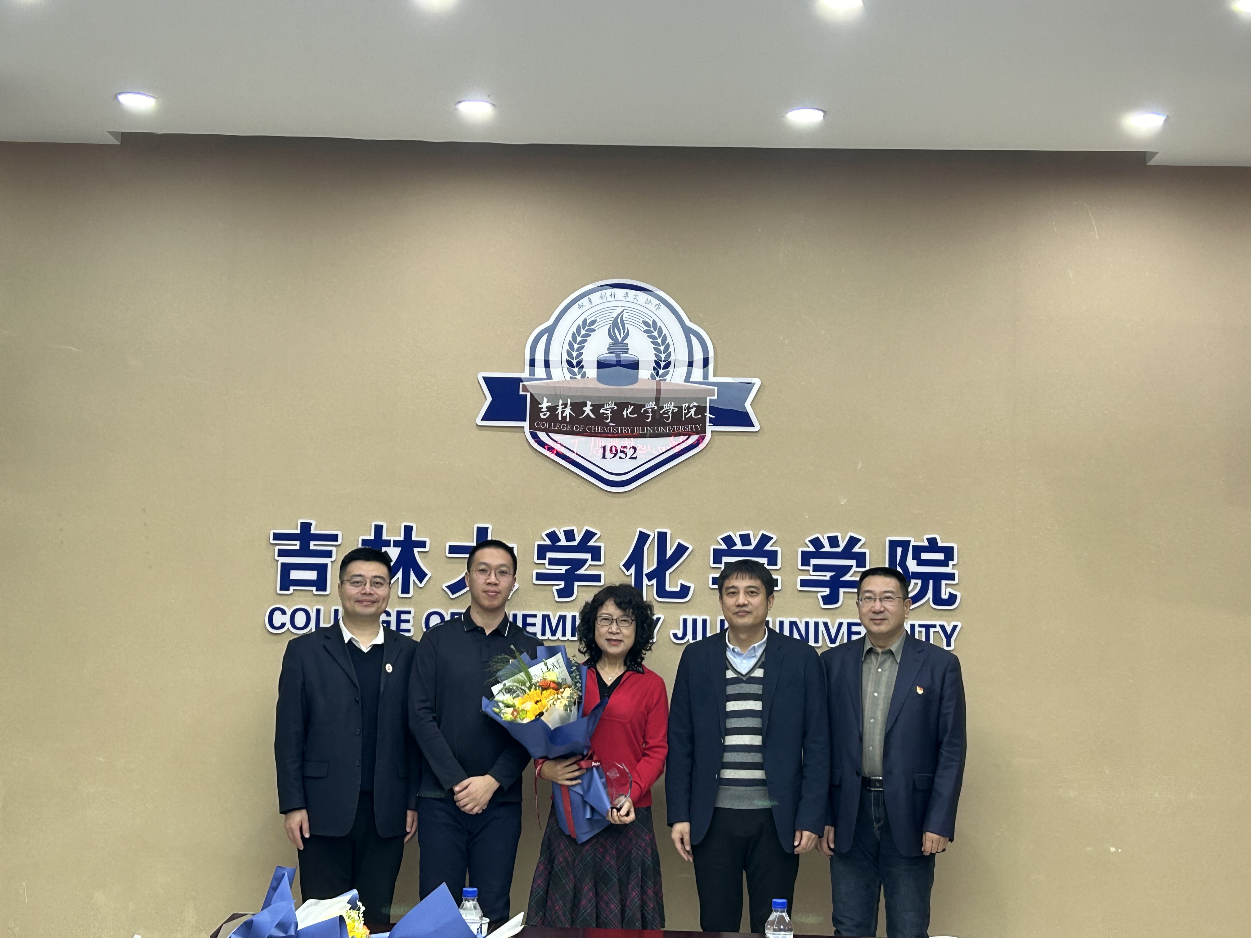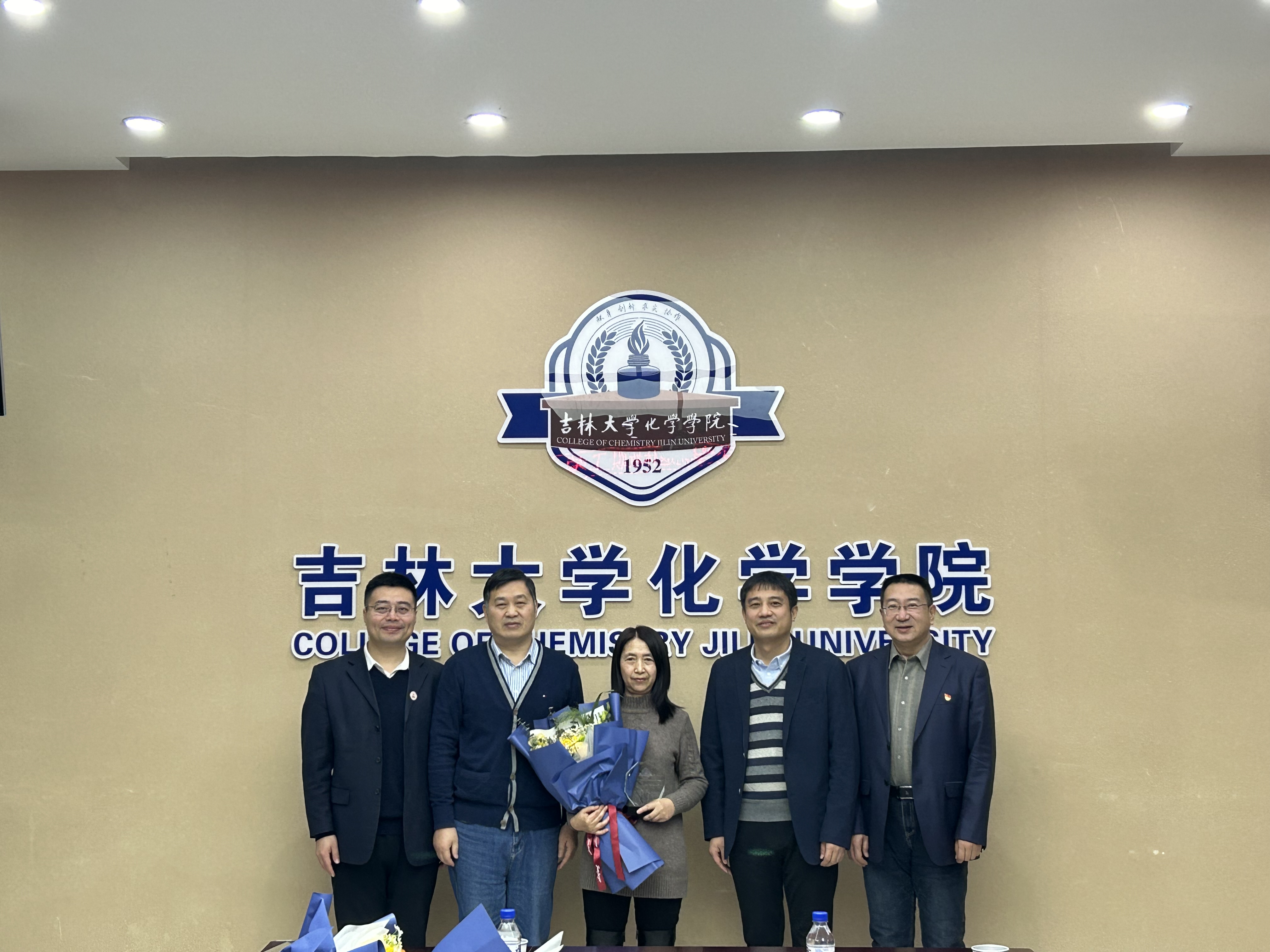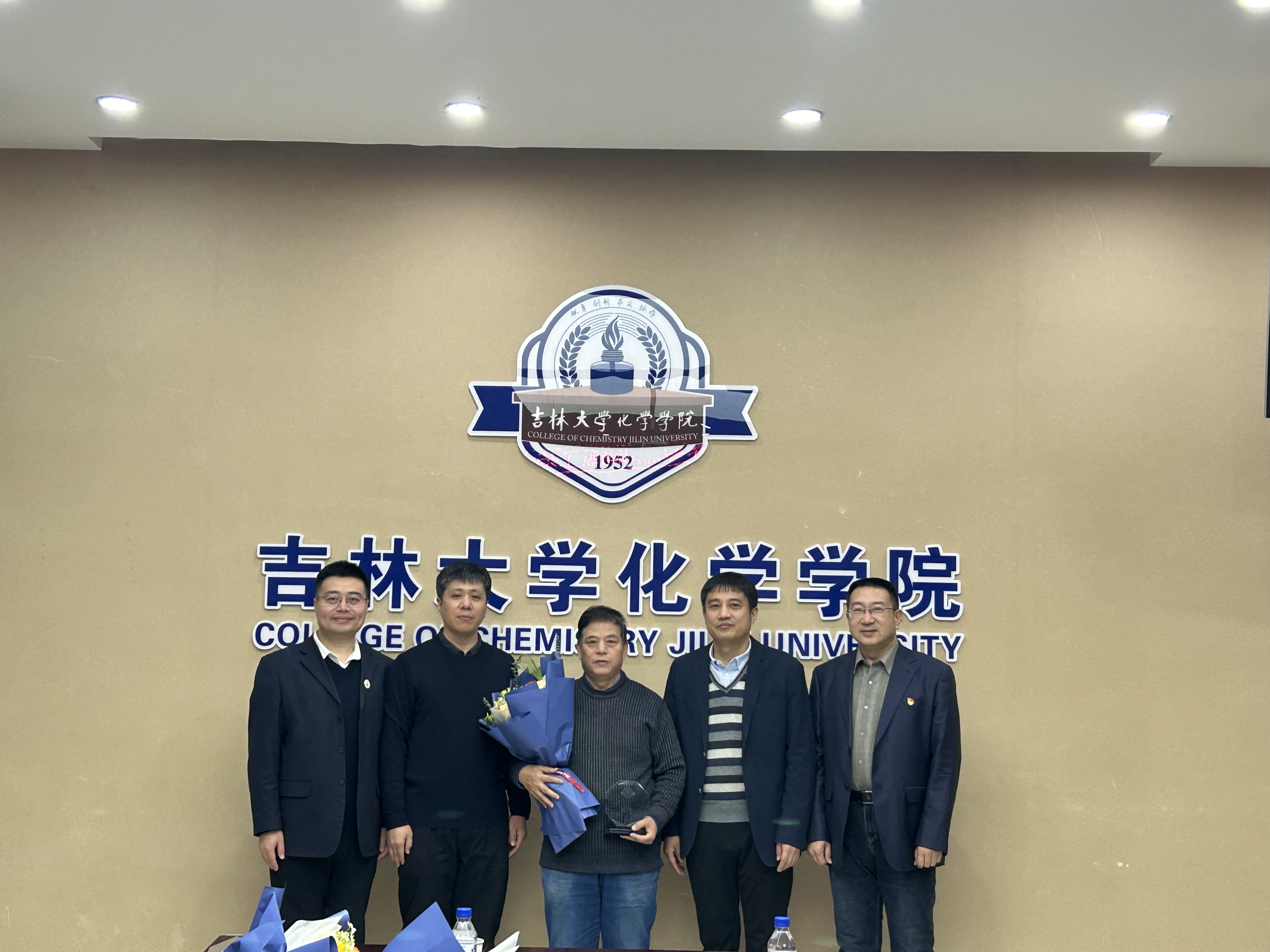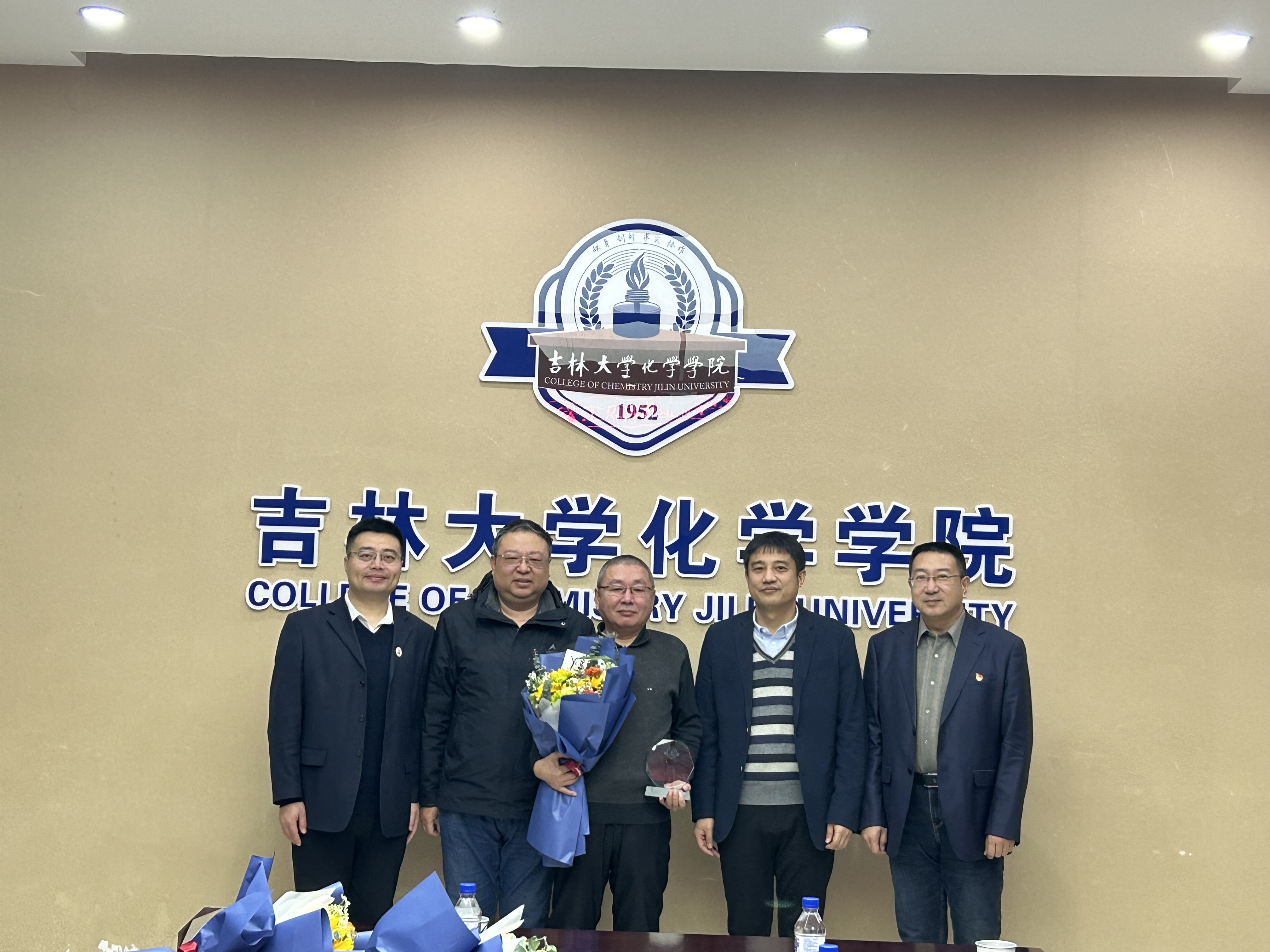 荣休纪念牌,系(所)实验室相关负责人为退休教师敬献鲜花,并合影留念。