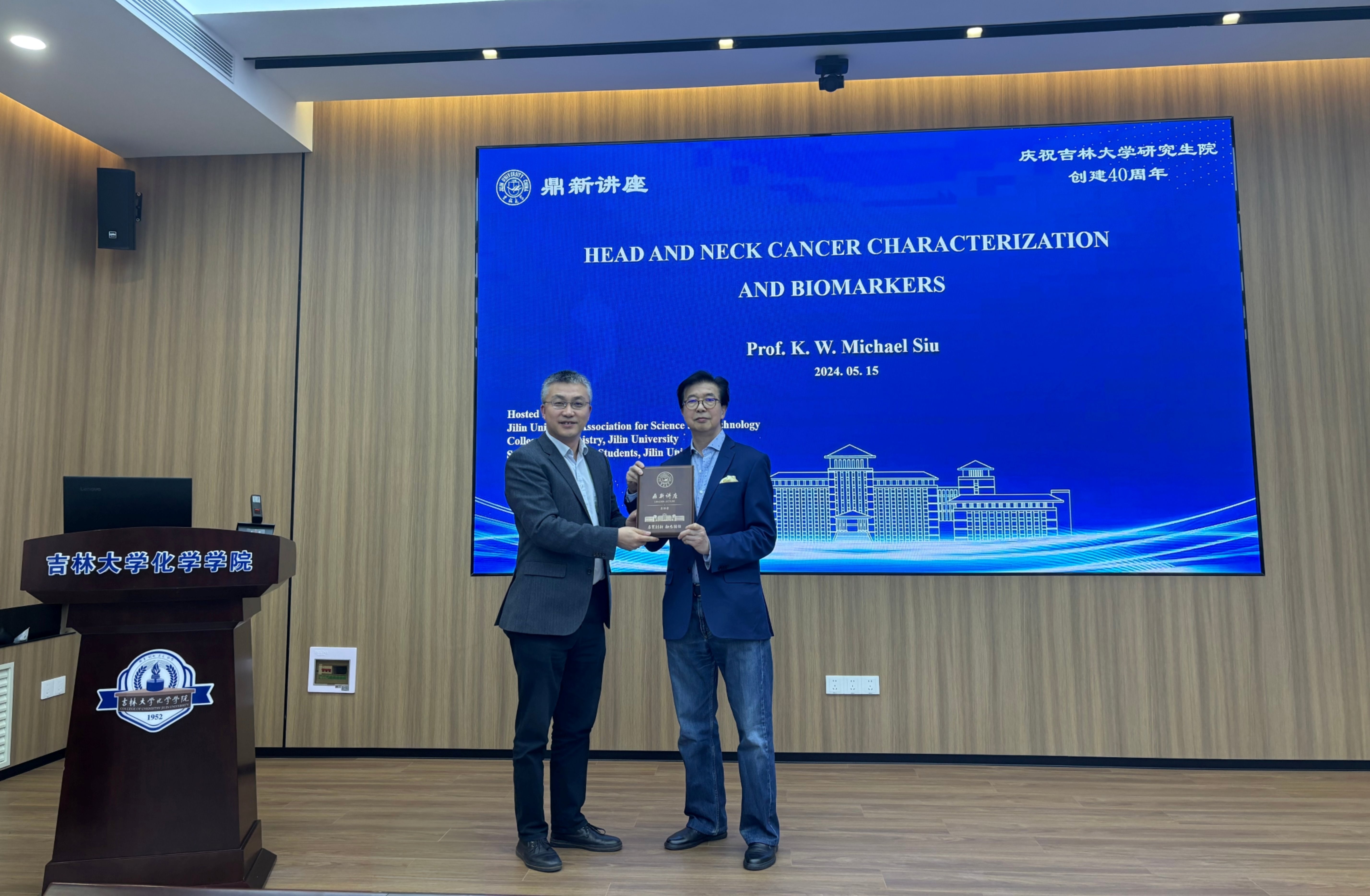 萧锦荣院士以“Head and Neck Cancer Characterization and Biomarkers”为题,为吉大师生带来了一场精彩的学术讲座。讲座中,他介绍了癌症的分类及早期诊断的重要性,重点介绍了其团队利用质谱技术发现和认证口腔和鼻喉癌生物标志物的研究工作,特别展示了几种生物标志物的临床转化,及对癌症的早期诊断和治疗的应用,介绍了新的研究进展及发现疾病生物标志物的新技术。整个报告深入浅出,精彩纷呈,令参加报告的师生受益匪浅。在互动交流环节,萧锦荣院士针对师生提出的问题进行了详细解答。