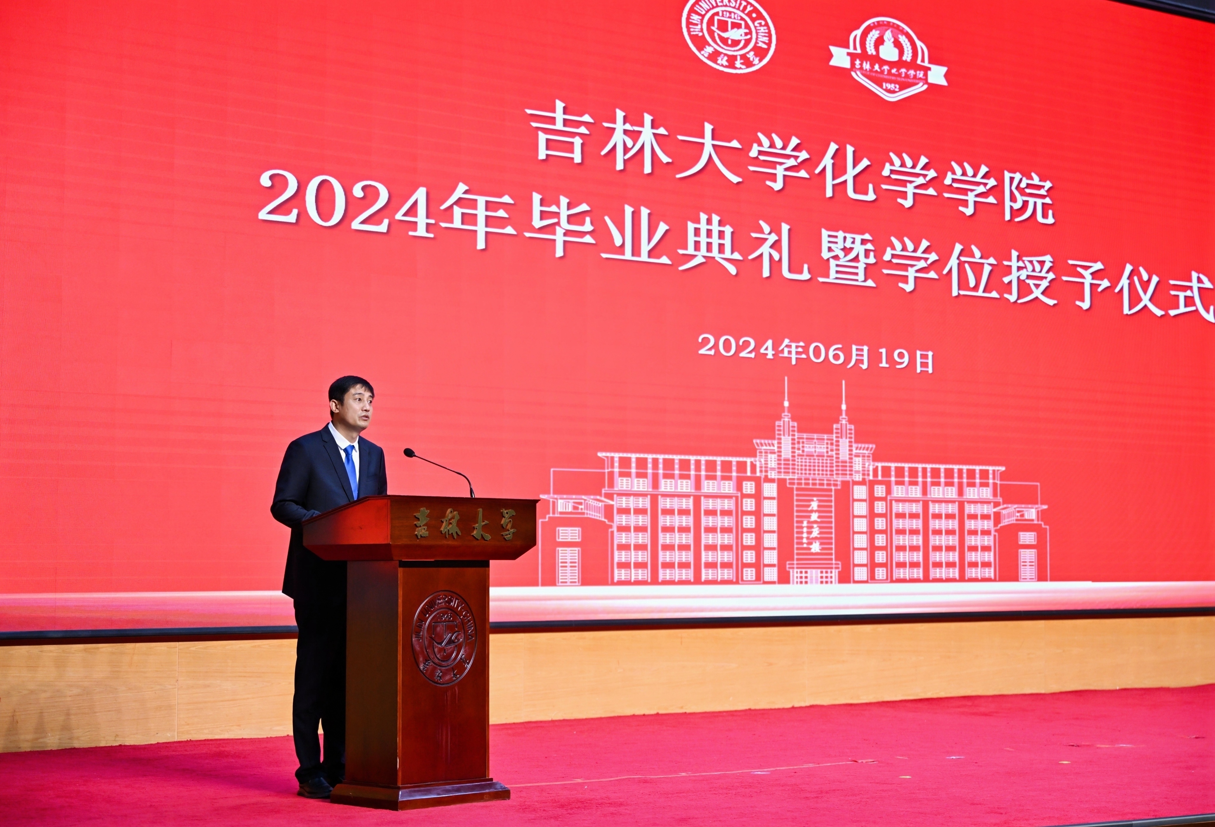 2021级博士研究生魏颖真代表毕业研究生发言。魏颖真在发言中深情回忆了在校九年的美好求学时光,深切表达了对母校师生的不舍与怀恋。她表示,全体毕业生定将秉承母校校训精神,感念师长亲切教诲,带着感恩与敬意,以“吉大化学人”的身份踏上新的人生旅程。