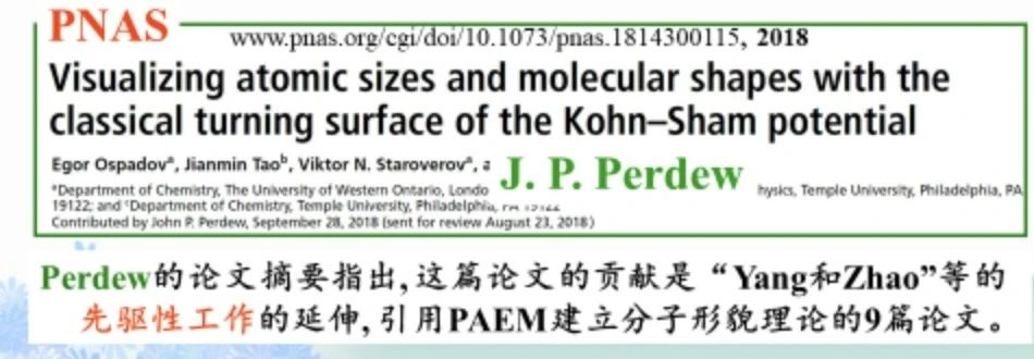 院士Perdew等在PNAS上发表论文,引用关于分子形貌研究的9篇论文,在摘要和正文中称我们团队的研究是先驱性的,他们的研究工作是我们研究的延伸。