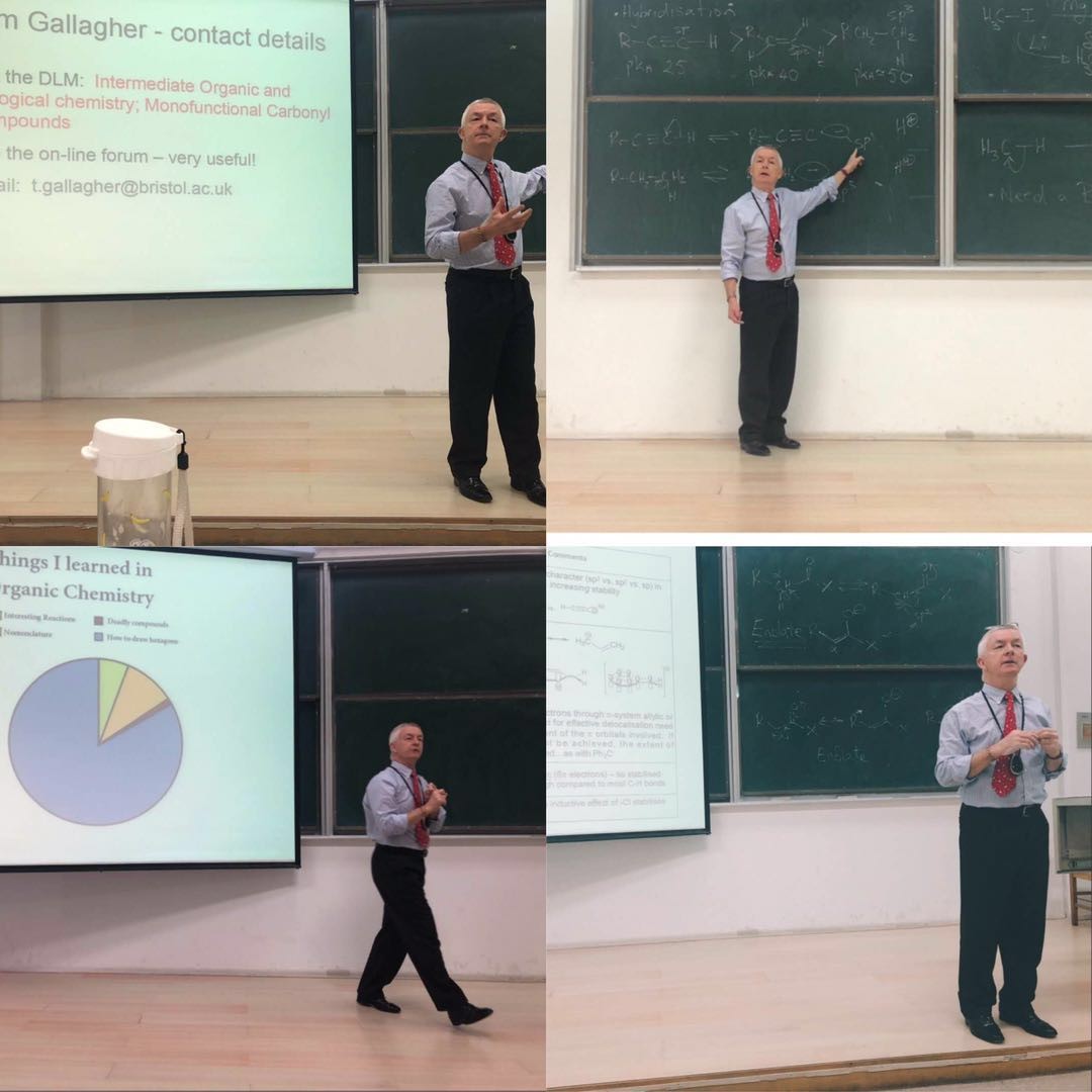 邀请,布里斯托大学副校长,前理学部学部长,有机化学教授Tim Gallagher以板书与PPT结合的讲授方式,为博彩App