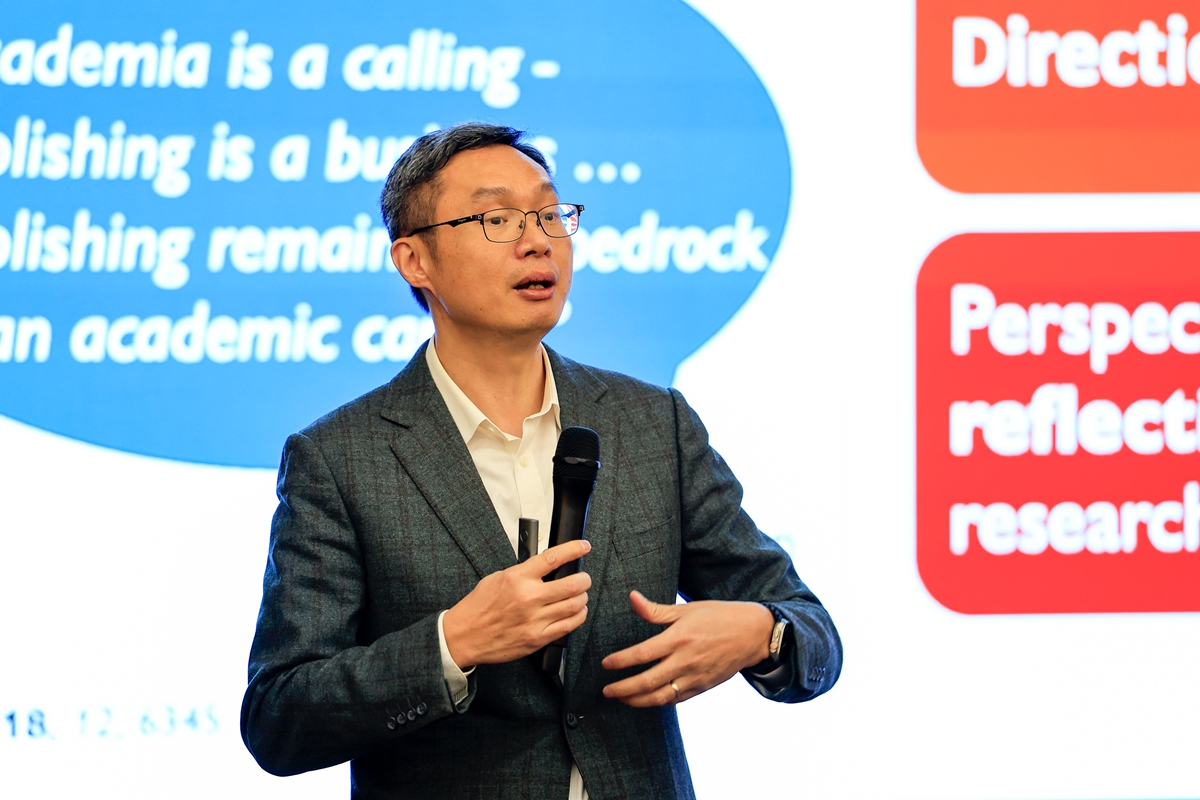 陈晓东教授围绕如何将设计思维融入学术论文写作这一主题,详细介绍了一种提升学术成果影响力的写作方法:基于对读者心理的理解,明确研究问题,提出解决方案,并通过草稿的反馈优化和不断迭代,进行文章的完善。他希望科研人员可以通过采纳设计思维,更有效地触及读者需求,跨越知识界限,以一种更有吸引力的方式呈现科研成果。在互动交流环节,陈晓东教授针对现场师生提出的问题进行了详细解答。
