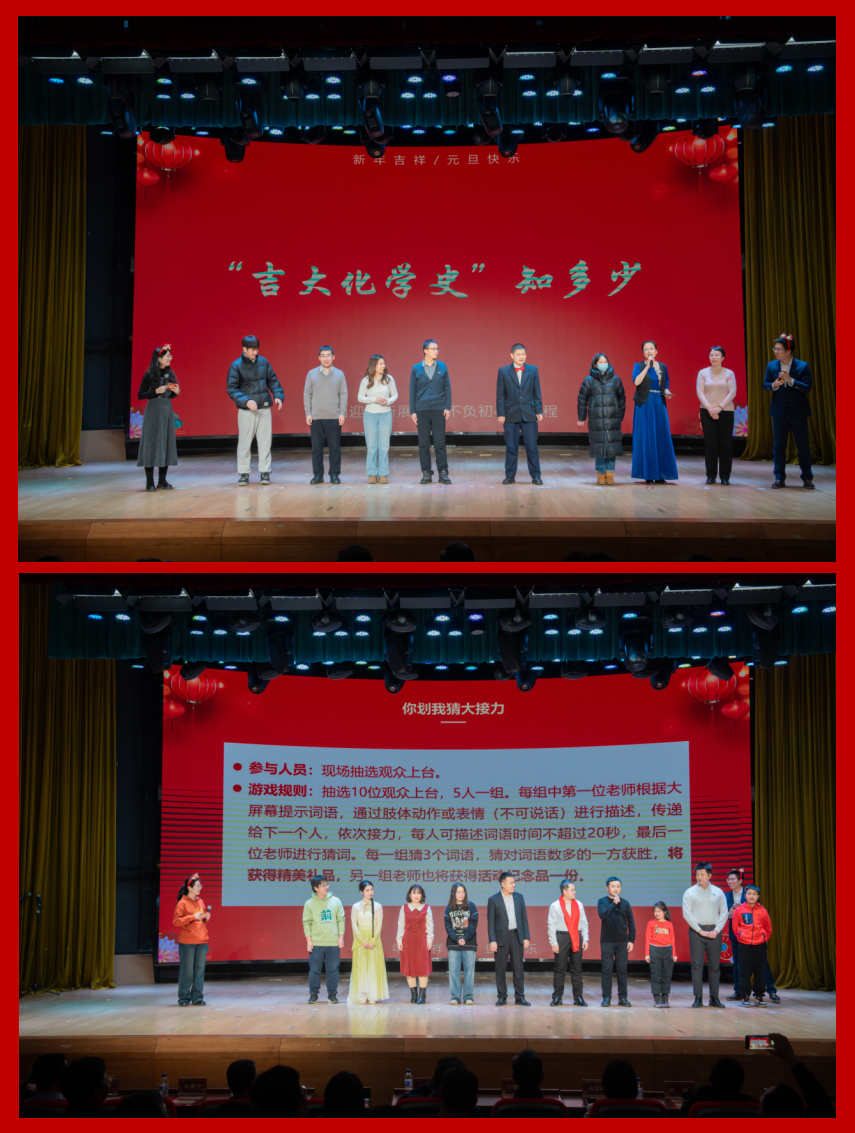 在游戏环节,“吉大化学史”知多少、你划我猜大接力、化学知识大比拼三轮游戏激发了现场观众的参与热情,现场气氛热烈,大家其乐融融。抽奖环节更是让晚会充满了惊喜和欢乐,中奖观众纷纷上台领取了专属自己的幸运。
