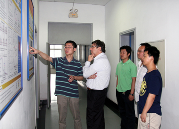 2009年度“爱因斯坦讲席教授”获得者英国曼彻斯特大学A. K. Geim教授(2010年诺贝奖物理奖获得者)在金属所学术访问——向Geim教授介绍团队在Direct Z-scheme光催化材料研究工作。