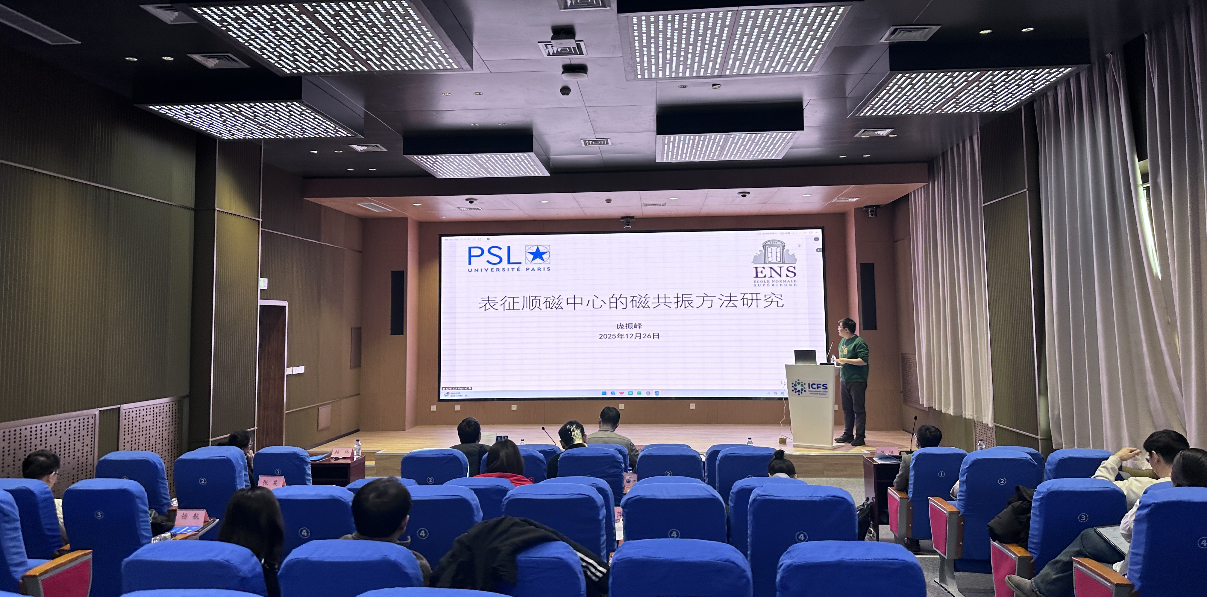 ,沙特阿拉伯法赫国王石油与矿业大学,新加坡国立大学、南洋理工大学,以及哈尔滨工业大学、上海交通大学等海内外知名高校及科研机构的12位优秀青年学者作学术报告。25日下午的报告涵盖等离激元催化、超分子材料化学、人造细胞模拟、软物质界面行为、水系电池及共价有机框架等多个前沿方向。26日上午,论坛在未来科学国际合作联合实验室继续举行,报告内容延伸至自重构催化、透射电子显微技术、仿生水凝胶、锌锰电池机理及顺磁中心磁共振方法等领域。与会学者围绕报告内容、研究方法与发展趋势展开深入交流与热烈讨论,充分展现了跨学科碰撞的学术活力。