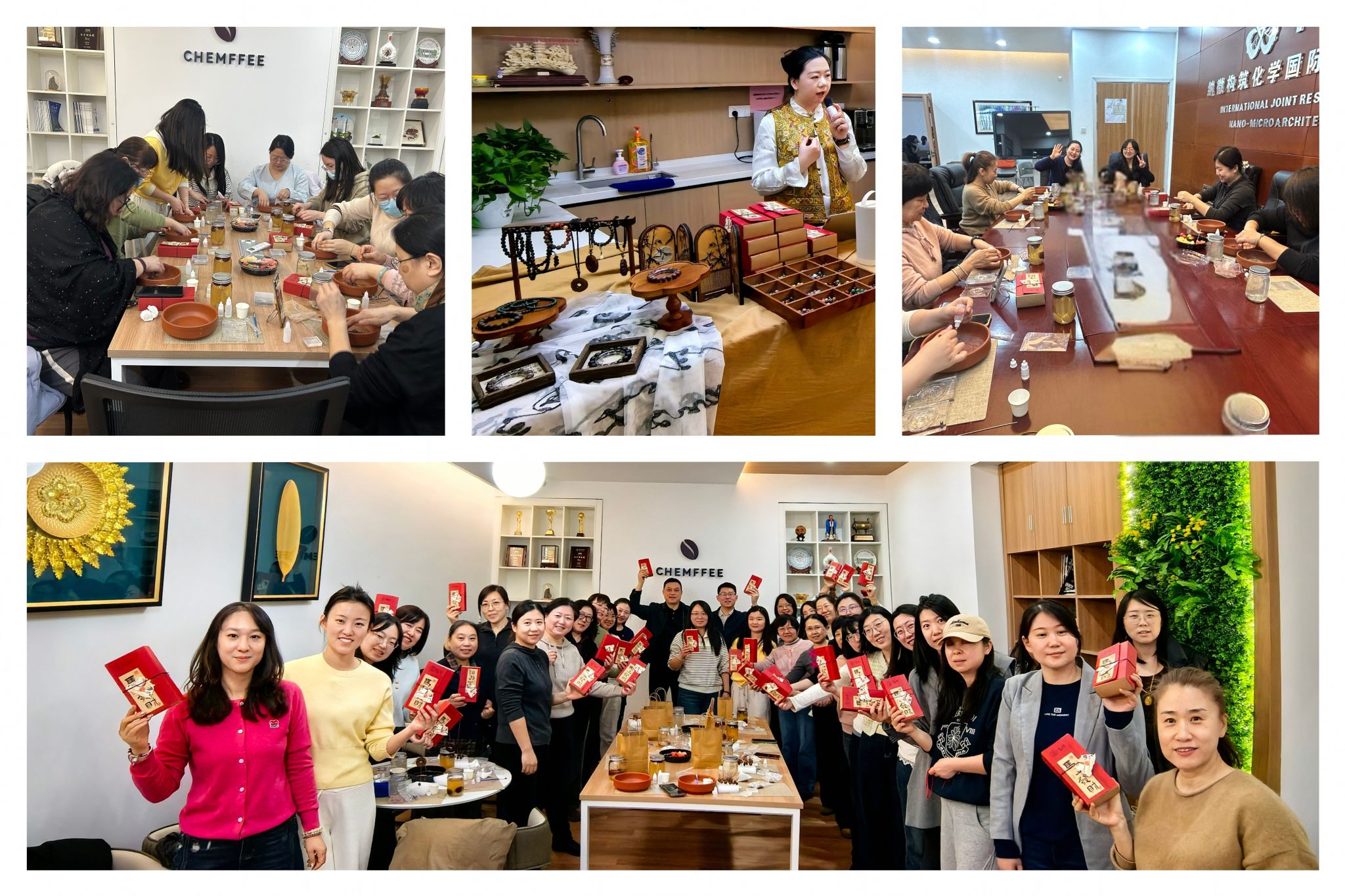 活动特邀手工艺老师为大家详细讲解中药手串的文化内涵与制作技巧。从中药材的选取、功效搭配,到手串的串制手法、色彩组合,老师都进行了生动细致的演示。女教职工们兴致盎然,在老师的指导下,精心挑选自己喜爱的药材与配饰。她们或专注地揉捏药粉,或相互交流探讨,一件件古朴雅致、药香四溢的个性化手串逐渐成型。