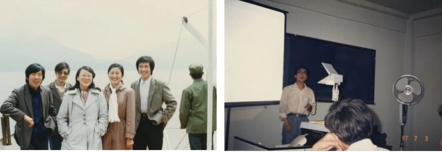 图10 1987年,与老师及同学合影(左:研究生支部合影,第三排右一为作者;右:无机研究生与曹锡章老师课题组合影,第二排左三为作者)