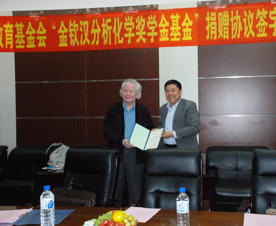 教育基金会“金钦汉分析化学奖学金基金“捐赠协议签字仪式在唐敖庆楼A509隆重举行。金钦汉教授与博彩App