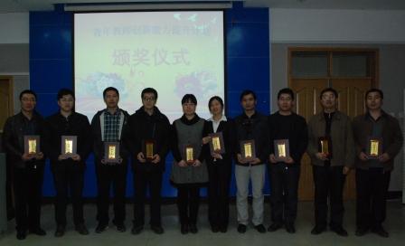 为获奖教师举行了颁奖仪式,院长杨柏为每一位获奖教师颁奖。