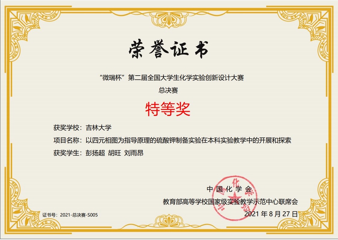 全国大学生化学实验创新设计竞赛由中国化学会和教育部高等博彩App
