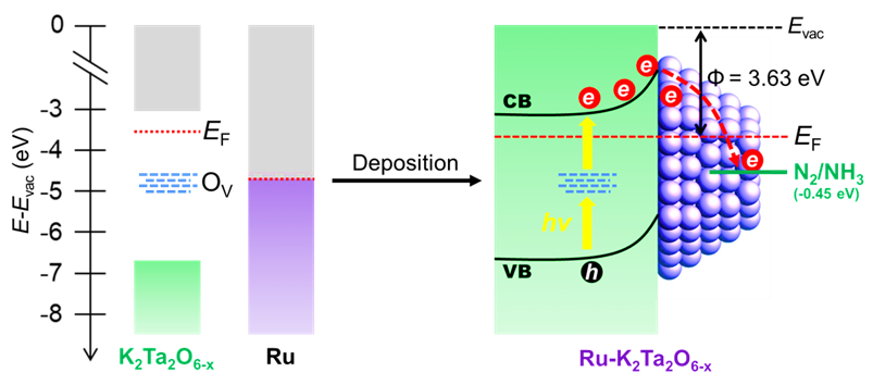 图2:Ru-K2Ta2O6-x的光催化合成氨机理示意图