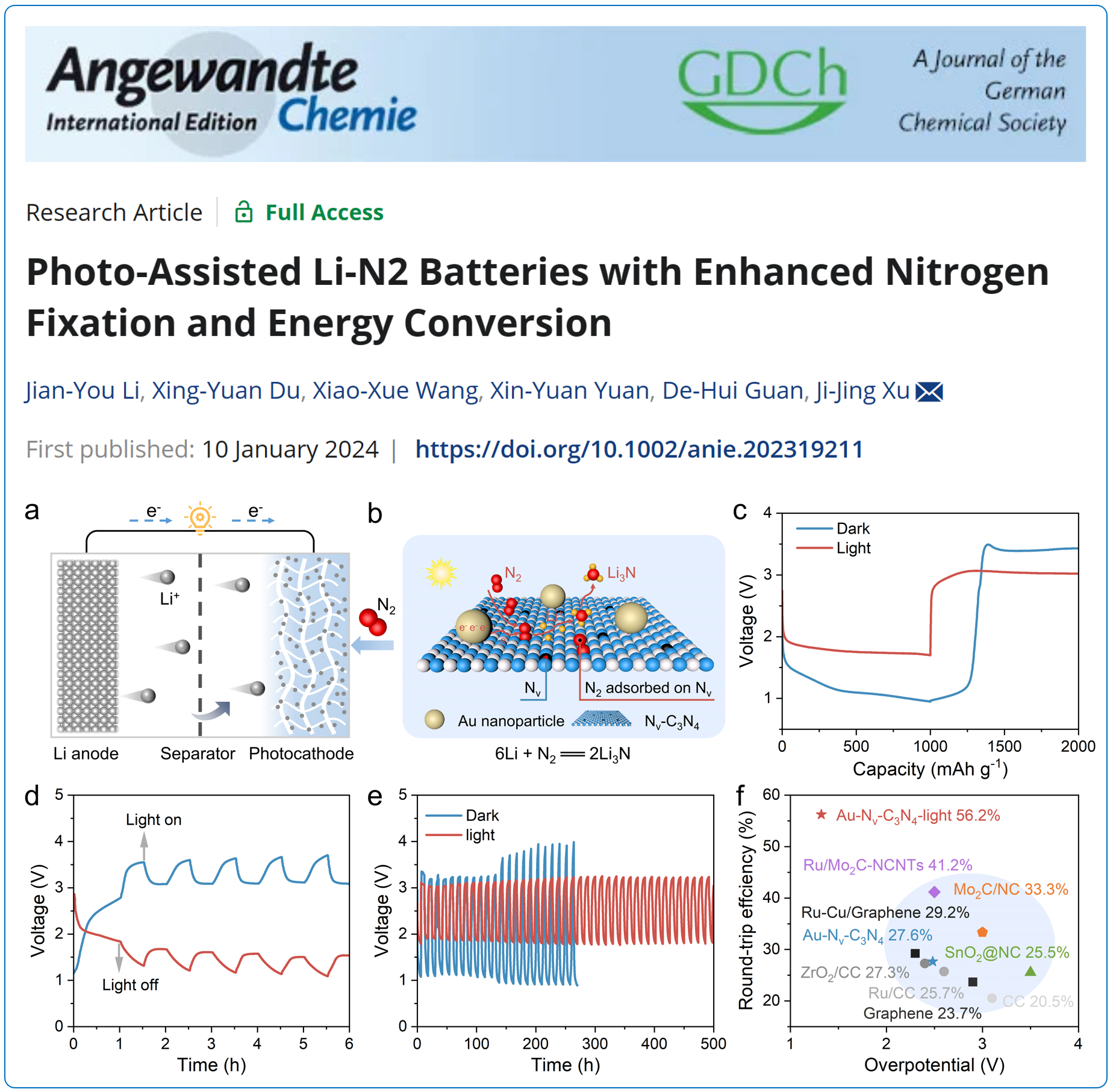 7.Angew. Chem. Int. Ed.:构筑光辅助锂−氮气电池新体系