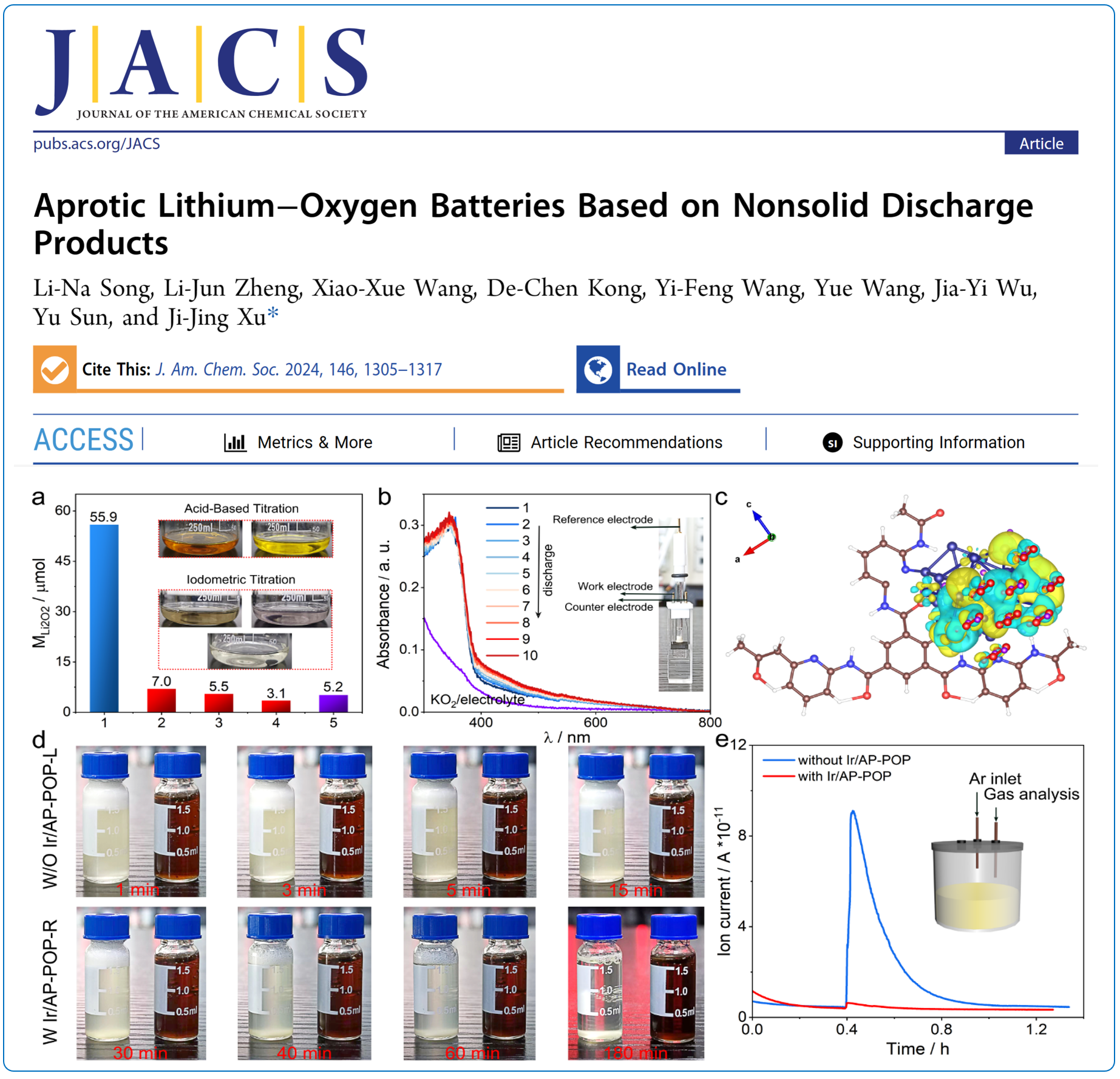 论文详情:Li-Na Song, Li-Jun Zheng, Xiao-Xue Wang, De-Chen Kong, Yi-Feng Wang, Yue Wang, Jia-Yi Wu, Yu Sun, and Ji-Jing Xu*, Aprotic Lithium–Oxygen Batteries Based on Nonsolid Discharge Products,J. Am. Chem. Soc., 2024, 146, 1305–1317.