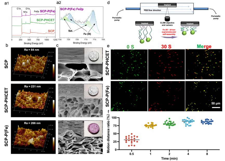 图1.智能超分子修饰植入物表面自组装能力验证