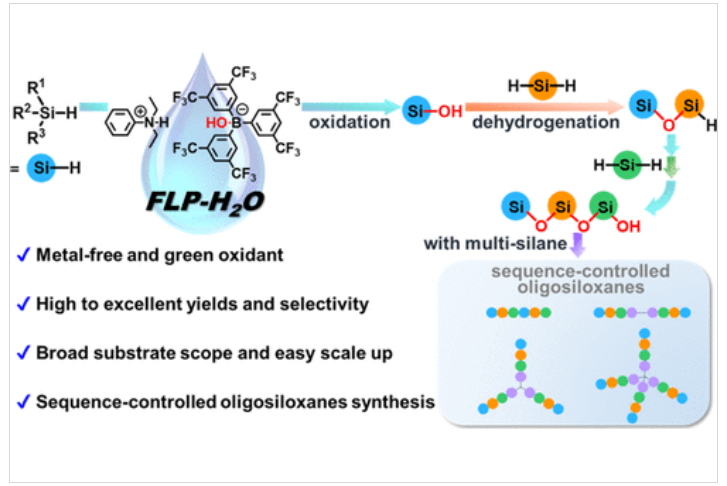 此外,该研究还将FLP氧化体系与脱氢偶联反应相结合,实现了序列可控硅醚低聚物的精准合成。这一成果不仅展示了FLP催化体系在硅醇合成中的应用潜力,还为聚合物合成提供了新的思路和方法。相关研究成果相关成果以标题为“Frustrated Lewis pairs-promoted organocatalytic transformation of hydrosilanes into silanols with water oxidant”发表在Journal of the American Chemical Society上。