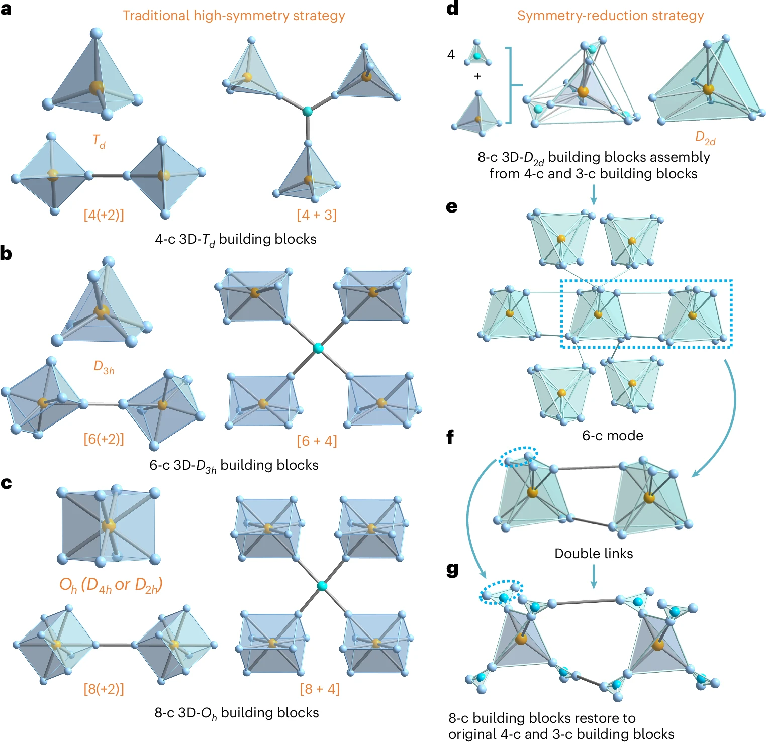 方千荣教授课题组与北京大学孙俊良团队合作,在三维共价有机框架材料(3D COF)的合成策略方向取得重要进展。基于3D COF设计拓扑多样性受限这一关键科学问题,该团队创新性地采用了一种基于降低构建单元对称性的策略,通过引入8连接(8-c)构建单元,成功设计并合成了两种新型三维共价有机框架材料JUC-644和JUC-645,从而突破了传统方法的限制,显著丰富了3D COF的拓扑多样性。研究成果以“Synthesis of three-dimensional covalent organic frameworks through a symmetry reduction strategy”为题,于1月8号发表在 Nature Chemistry 上。