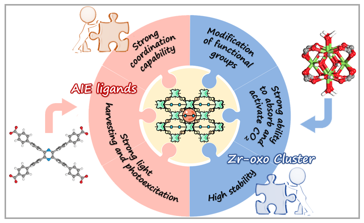 图1. AIE配体Zr-MOFs光催化剂设计原理示意图