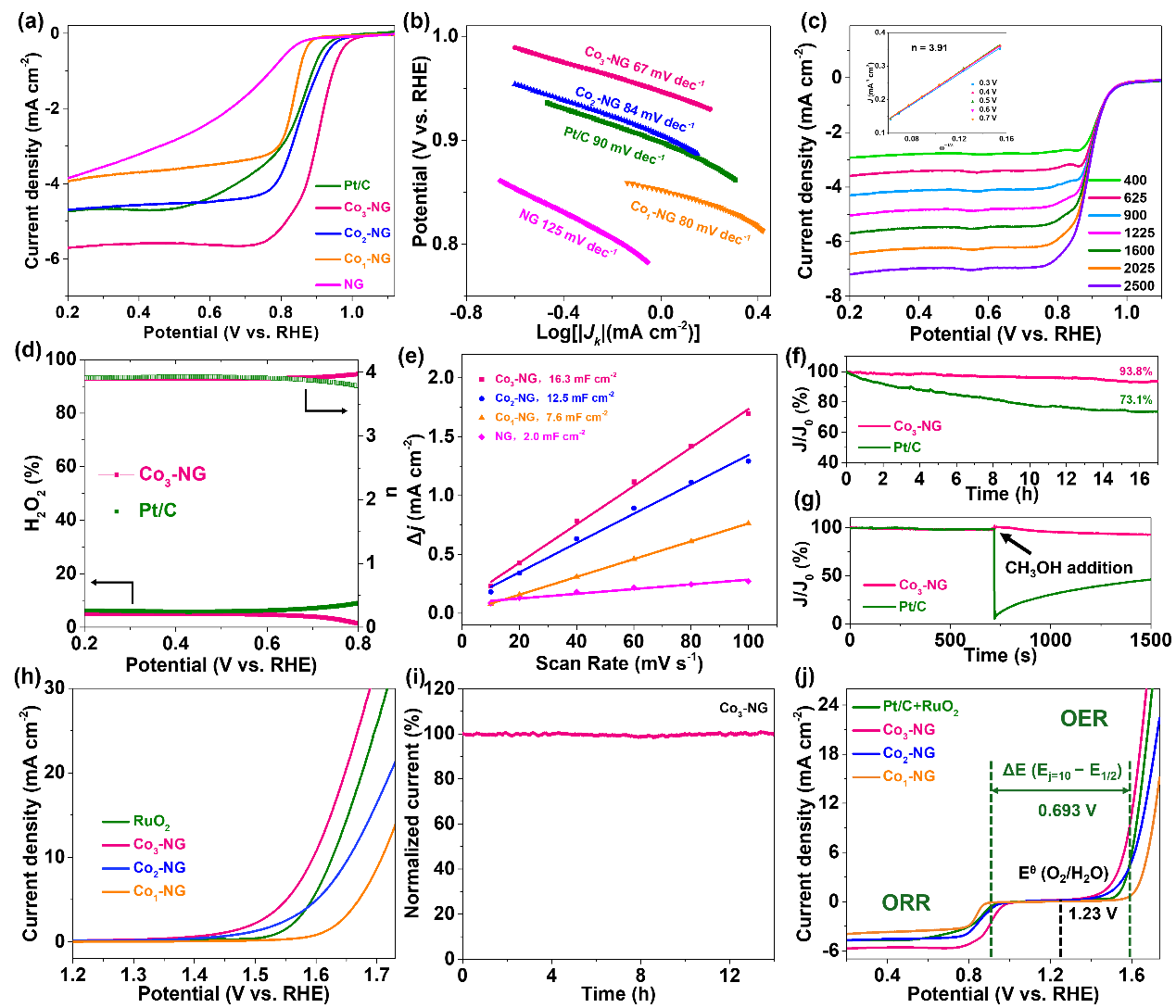 图2Co3-NG催化剂的电化学性能图