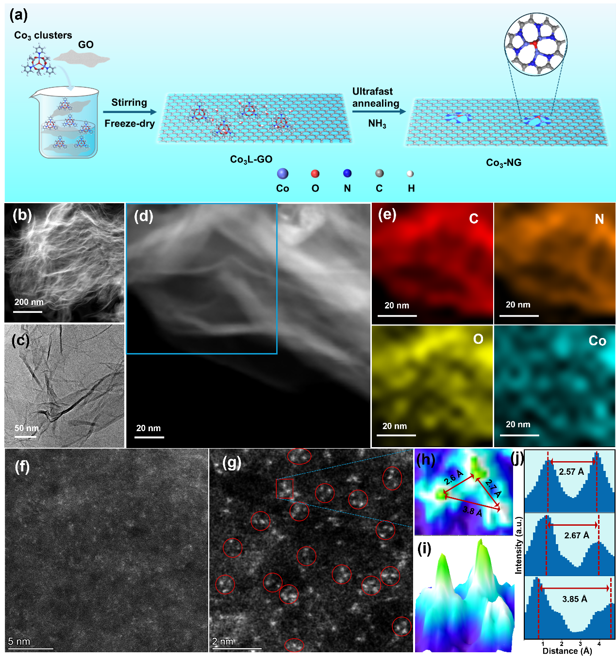 图1Co3-NG催化剂的合成和形貌表征