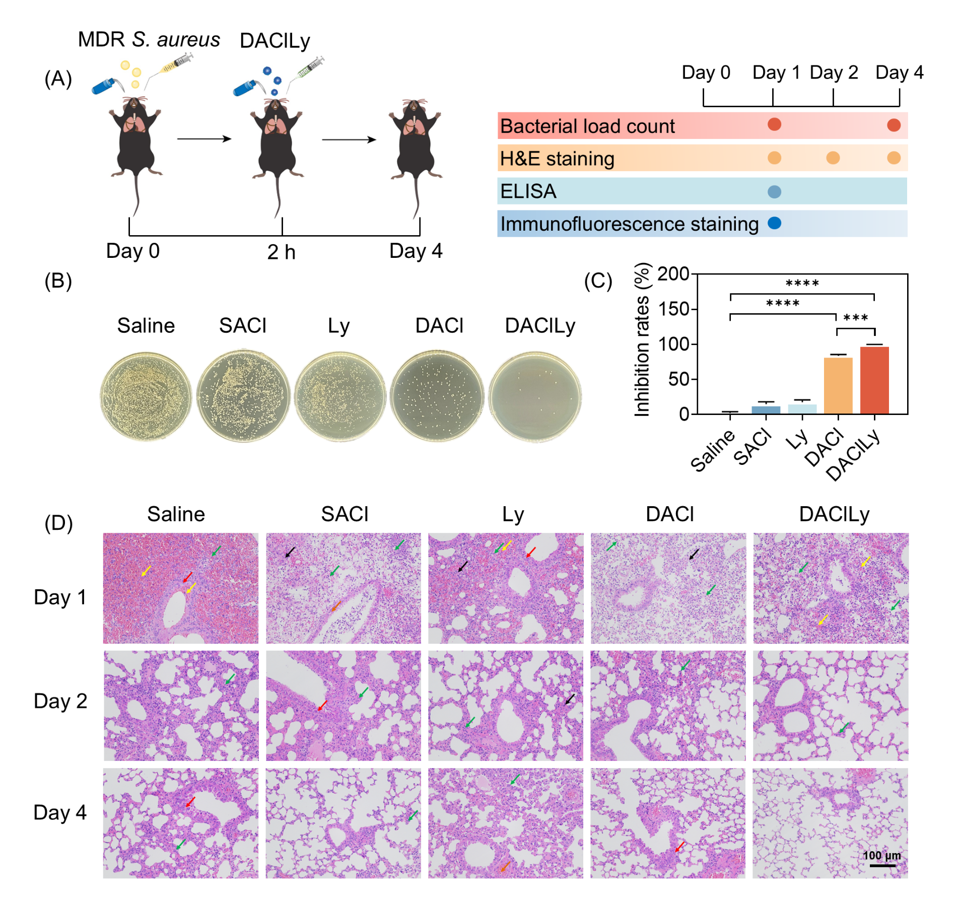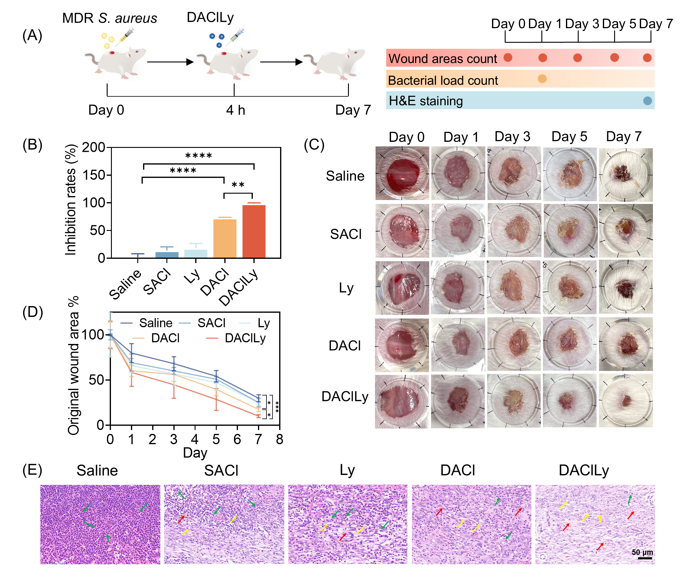图3.DAClLy纳米囊泡在小鼠皮肤伤口感染中的抗菌活性。