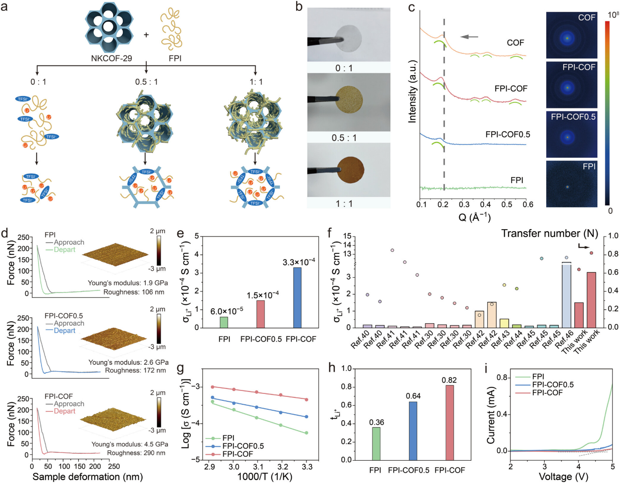图1 聚合物-共价有机框架电解质的设计与离子传导性能