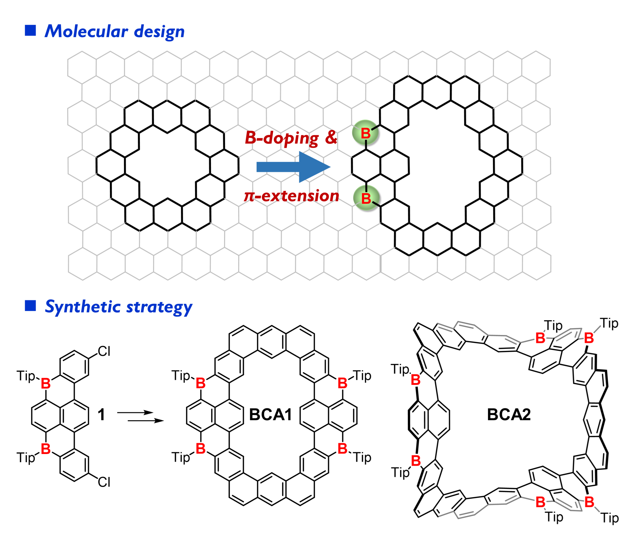 相较于全碳结构及富电子杂原子掺杂的环带体系,含硼分子环带研究面临巨大挑战性,其核心难题在于硼原子对水氧具有敏感性,导致硼烷化合物稳定性偏差、反应适应性不足,同时硼原子自身的缺电子性,进一步增加了大环的合成难度。迄今为止,文献中仅报道了几例硼氮共杂的分子环带,而结构更为纯粹的硼杂分子环带尚未实现,限制了大环化学与硼元素化学的融合发展。