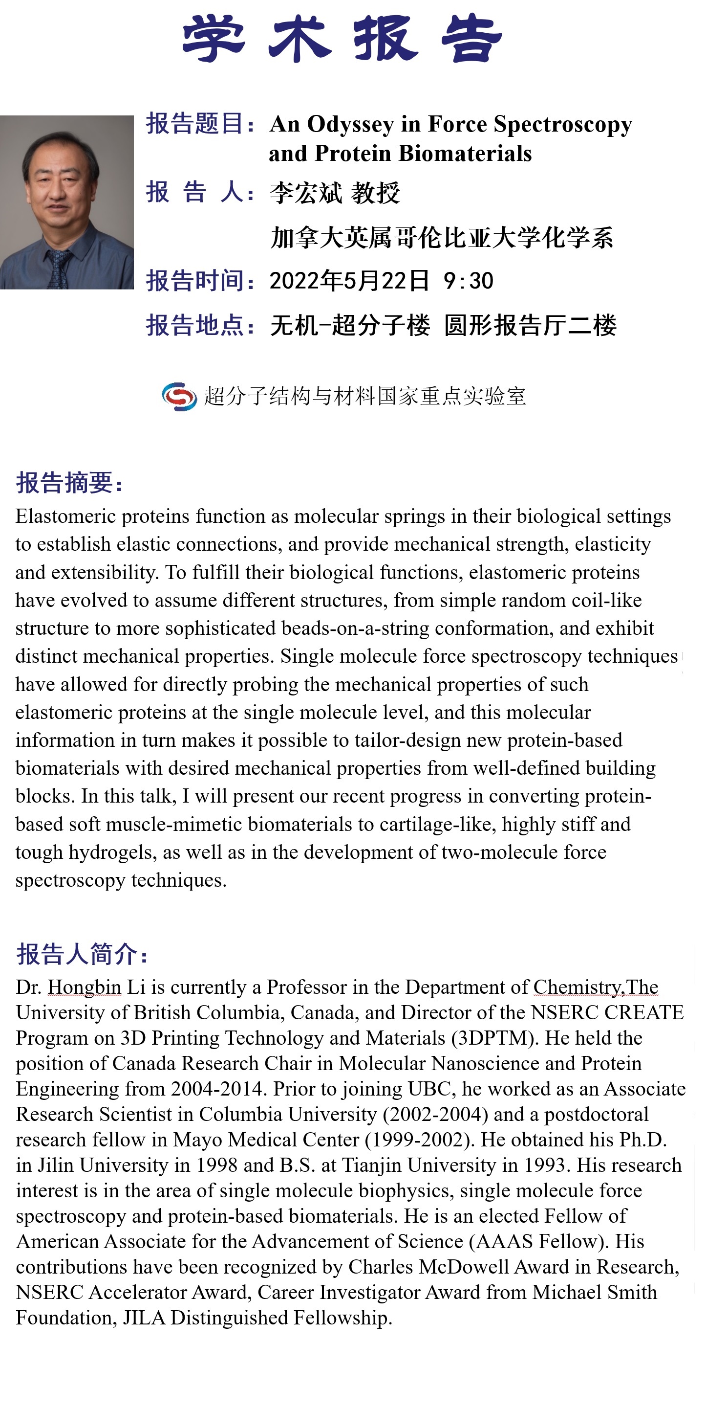 学术报告名称