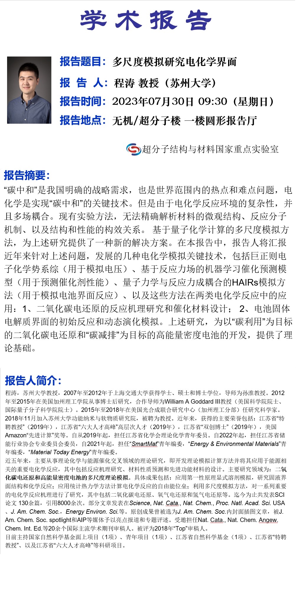 学术报告名称