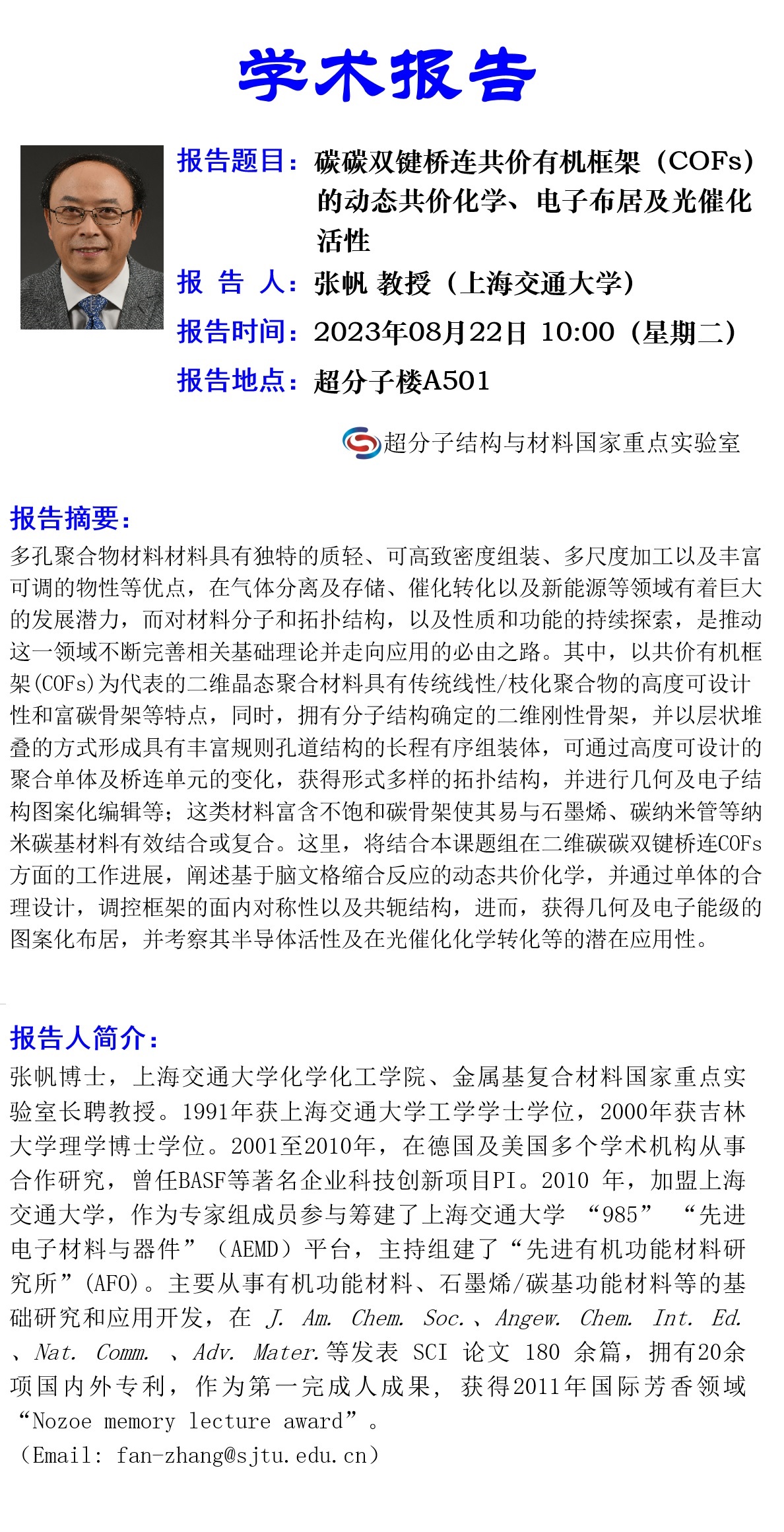 学术报告名称
