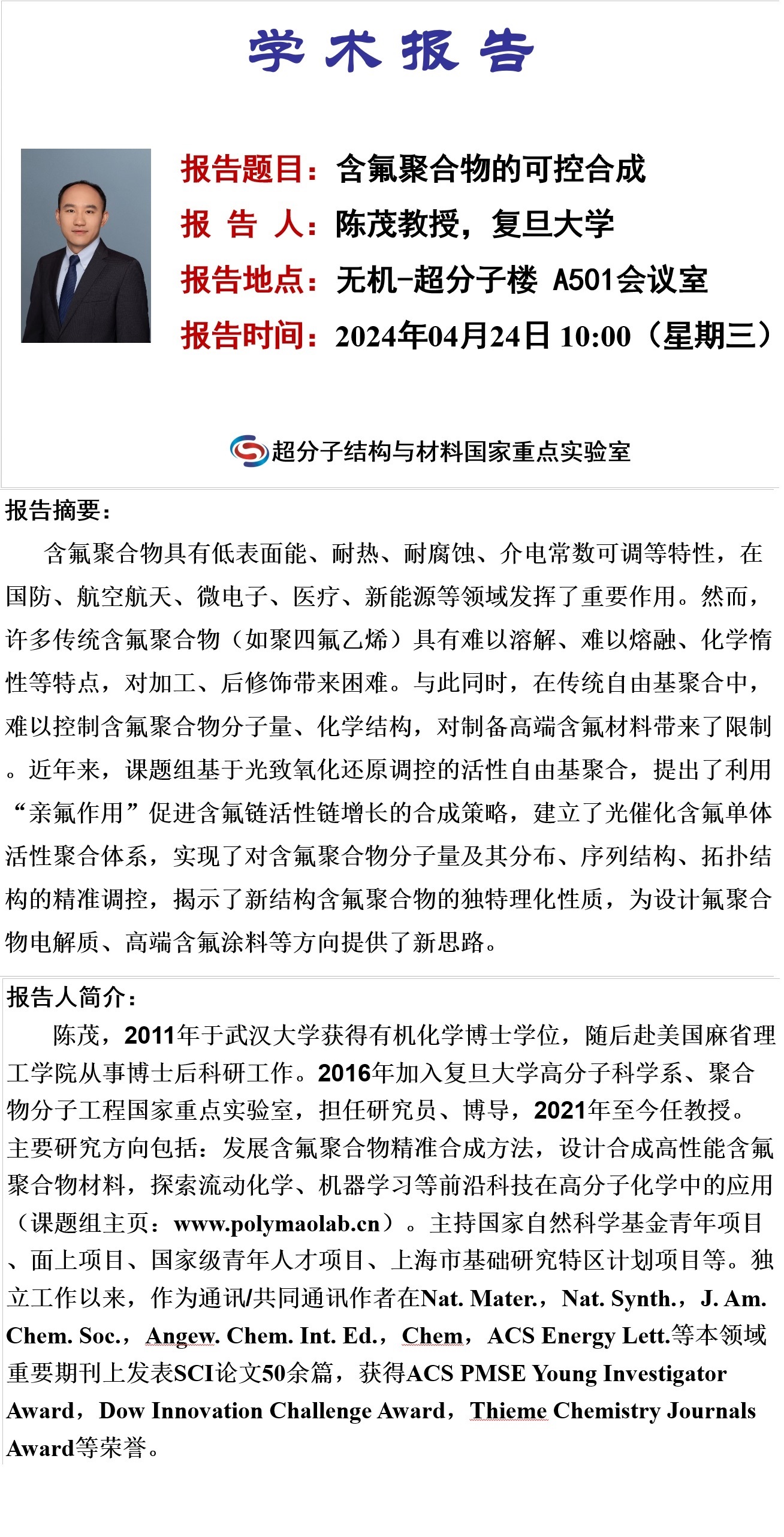中心校区 无机-超分子楼A501会议室