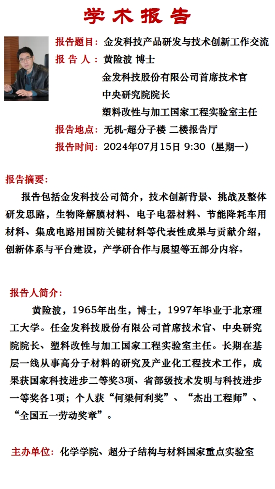 金发科技股份有限公司首席技术官