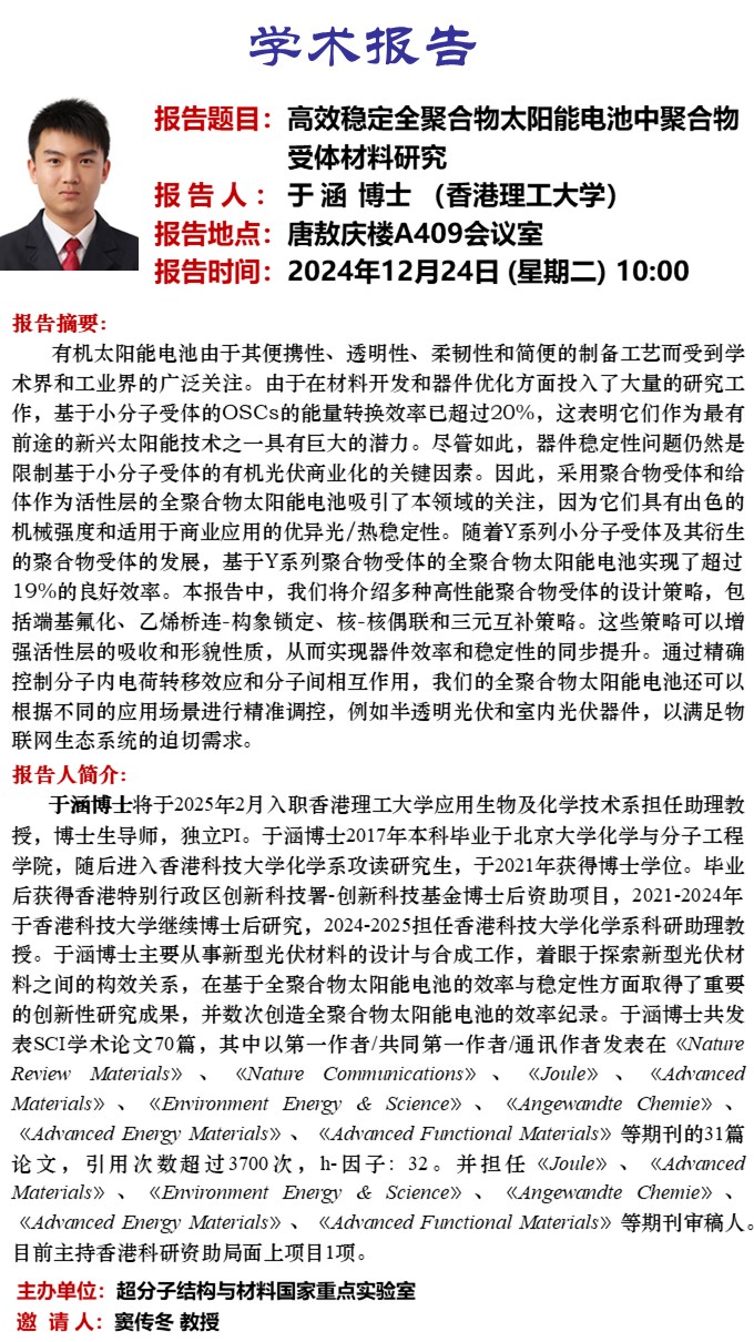 高效稳定全聚合物太阳能电池中聚合物受体材料研究