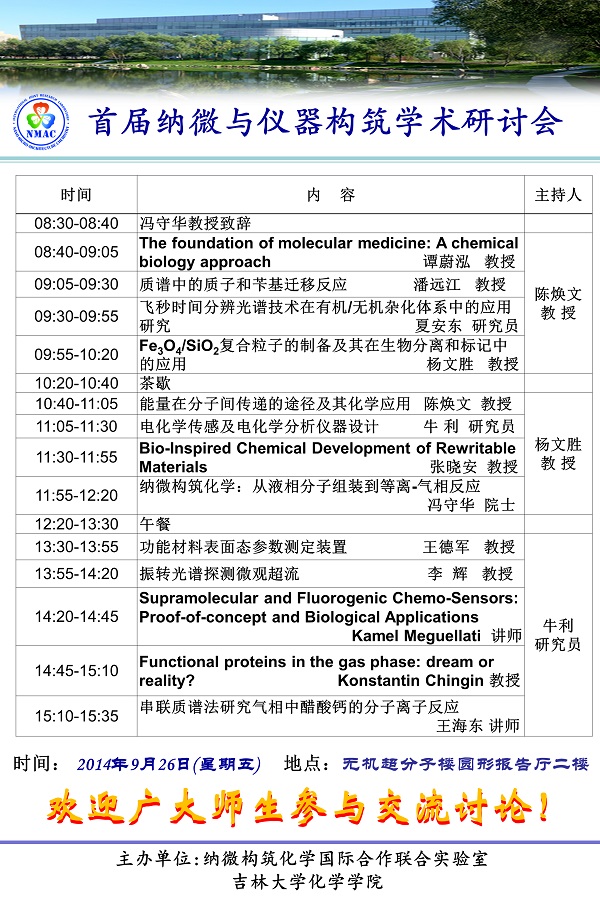 由纳微构筑化学国际合作联合实验室与博彩App 主办的首届纳微与仪器构筑学术研讨会将于