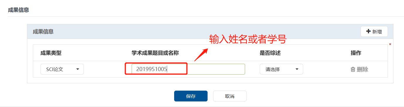申报研究生于58日前使用个人邮箱账号登录“一张表”平台//one.slot-app.net,在“研究生评奖评优管理”-“研究生评奖评优申报”栏,点击“新增”进行信息填报及佐证材料上传,其中成果信息只需要输入“姓名或者学号”,然后在已审核通过的成果库中选择3篇代表作参评。同时扫码入“2023届优秀毕业生申报群”。成果库中未录入的成果需及时录入-导师审核-科研办姜老师审核