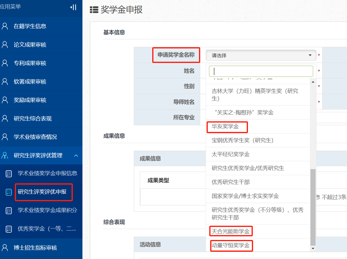 (1)申报人于11月30日12:00前使用个人邮箱账号登录“一张表”平台(//one.slot-app.net),在“研究生评奖评优管理”-“研究生评奖评优申报”栏,点击【新增】进行【天合光能助学金】信息填报,同时扫码加入申报微信群。