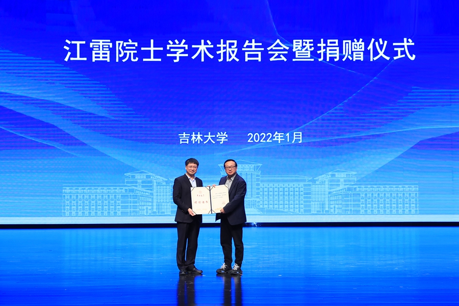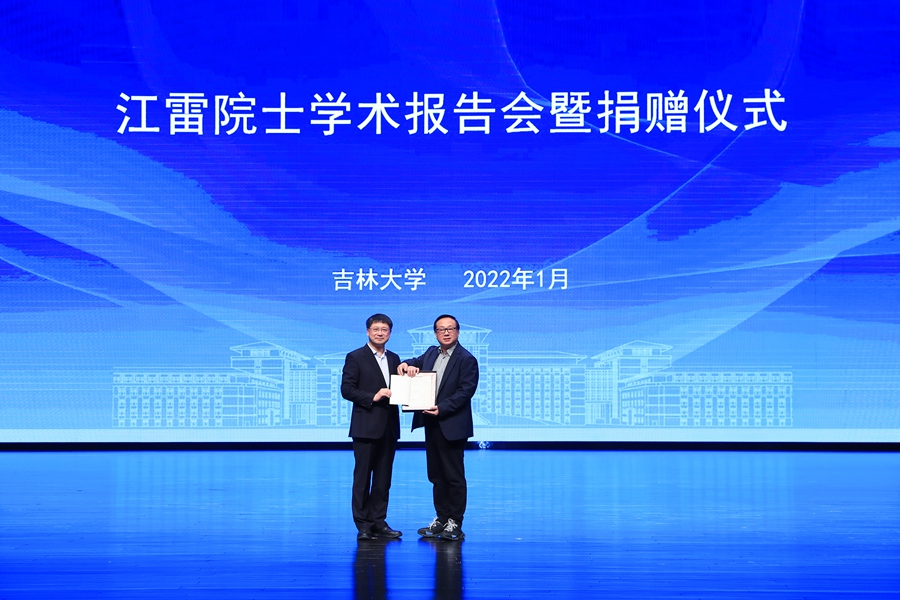 接受江雷院士捐赠的硕士毕业论文,并向江雷院士颁发捐赠证书。