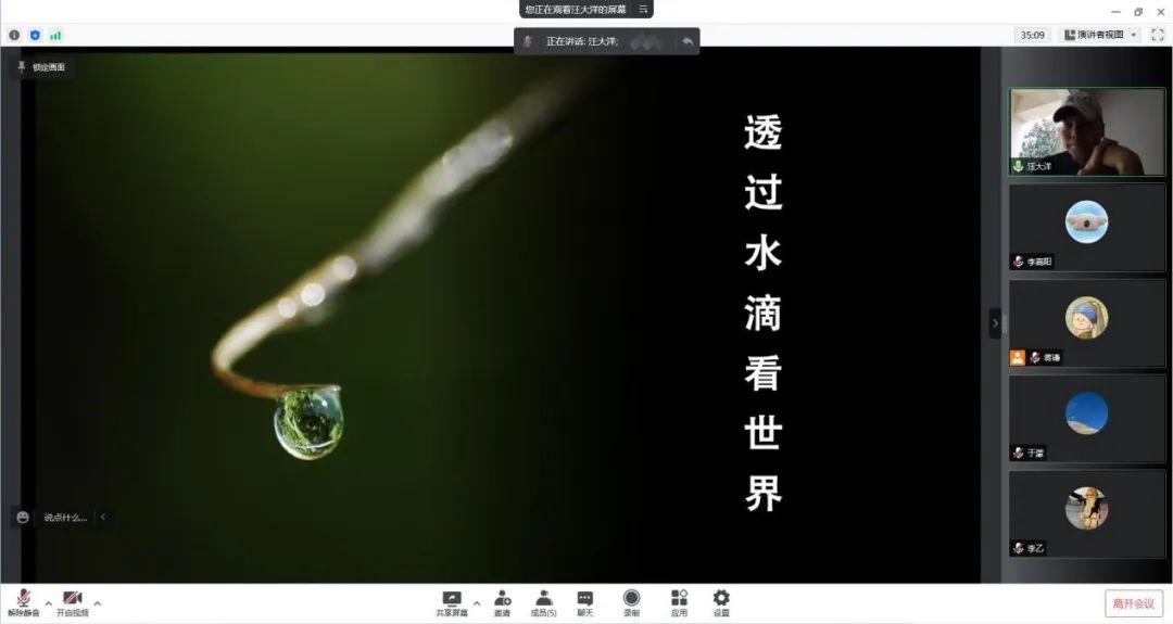 举办了“吉大化学70年院庆系列活动——科学与未来系列讲座”,本次讲座邀请到了汪大洋教授作主题为“透过水滴看世界”的线上学术报告。