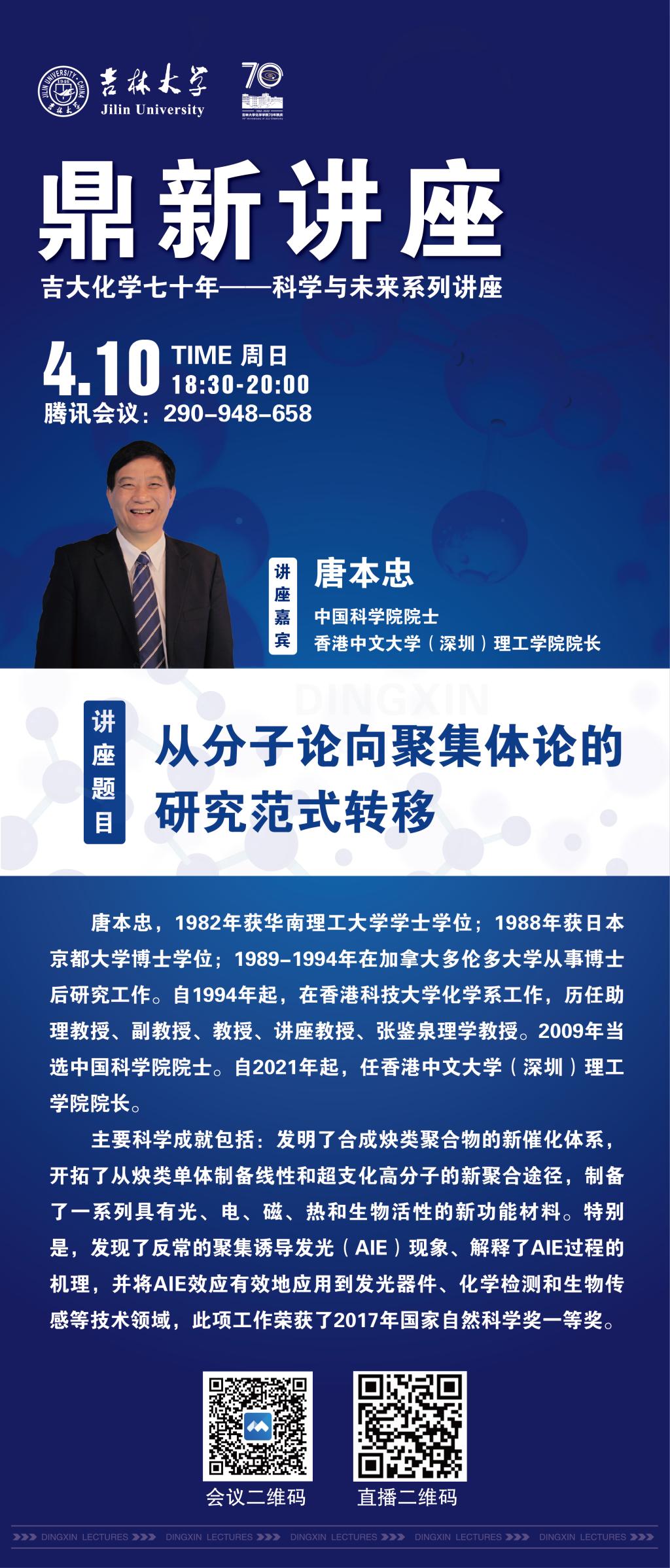 吉大化学70年院庆系列活动——科学与未来系列讲座:从分子论向聚集体论的研究范式转移