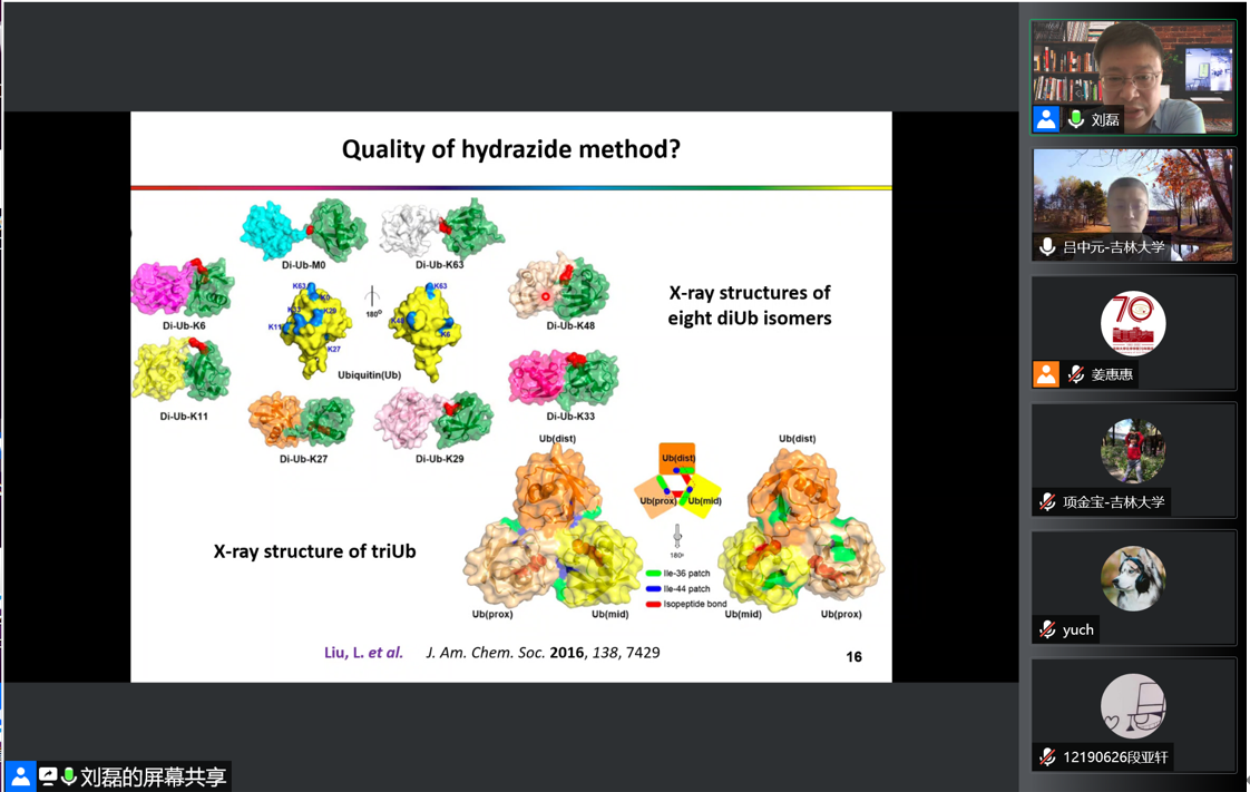 5月14日上午,清华大学化学系教授、国家杰出青年科学基金获得者刘磊应邀线上做客“吉大化学七十年——科学与未来系列讲座”,以“蛋白质化学合成探索”为题,为博彩App