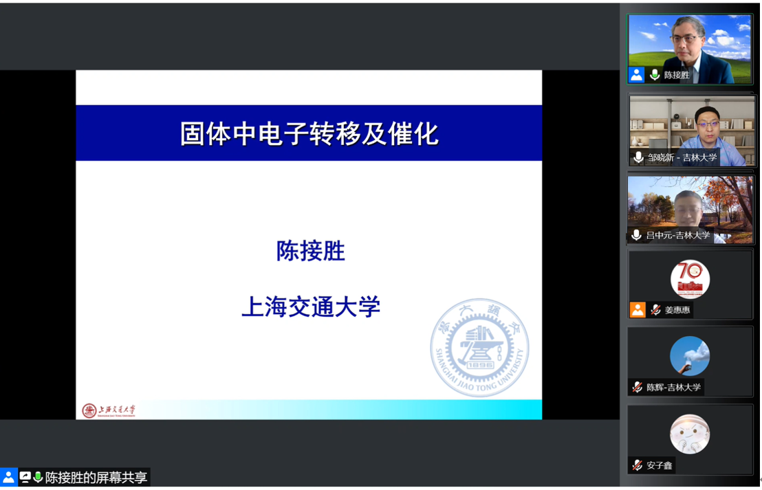 教授,国家杰出青年科学基金获得者陈接胜应邀线上做客“吉大化学七十年——科学与未来系列讲座”,以“固体中电子转移及催化”为题,为博彩App