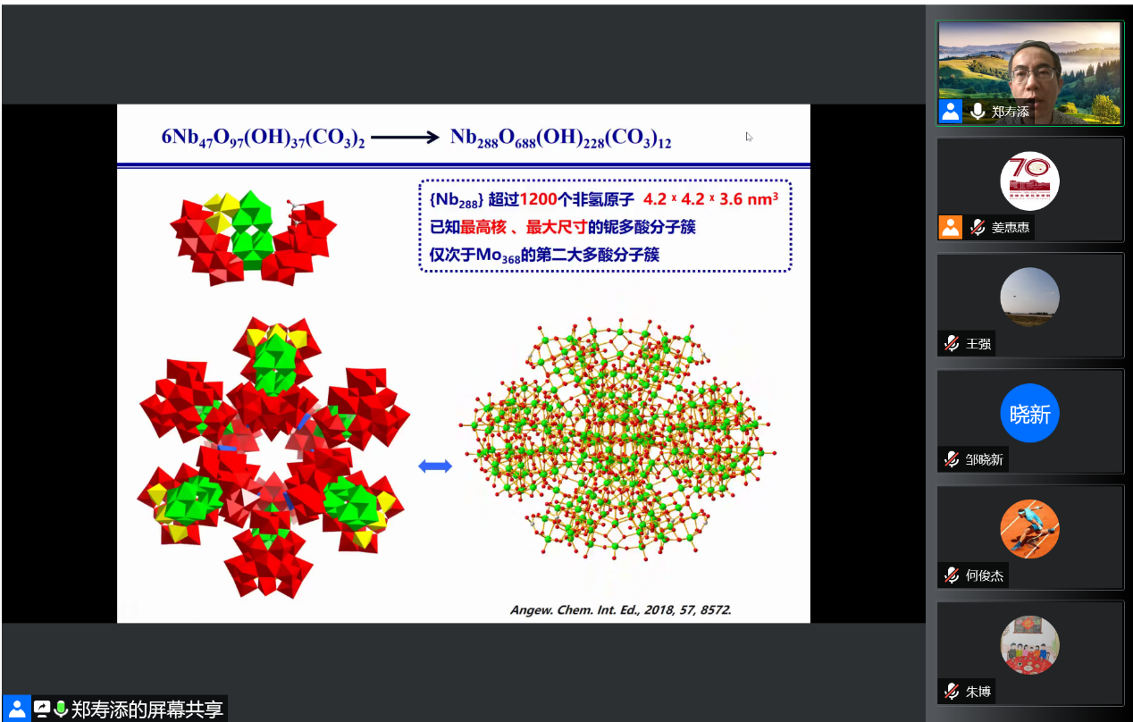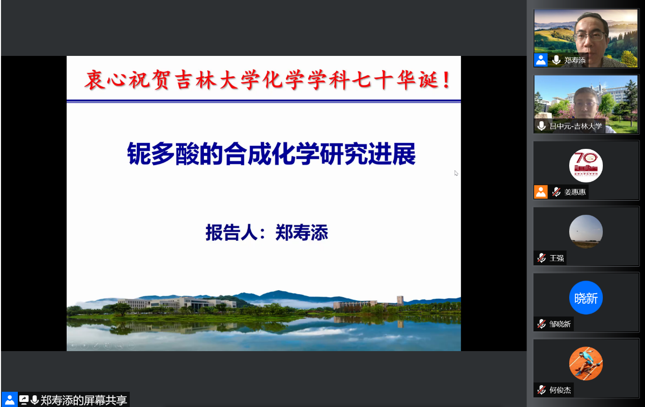 院长,教育部领军人才郑寿添应邀线上做客“吉大化学七十年——科学与未来系列讲座”,以“铌多酸的合成化学研究进展”为题,为博彩App