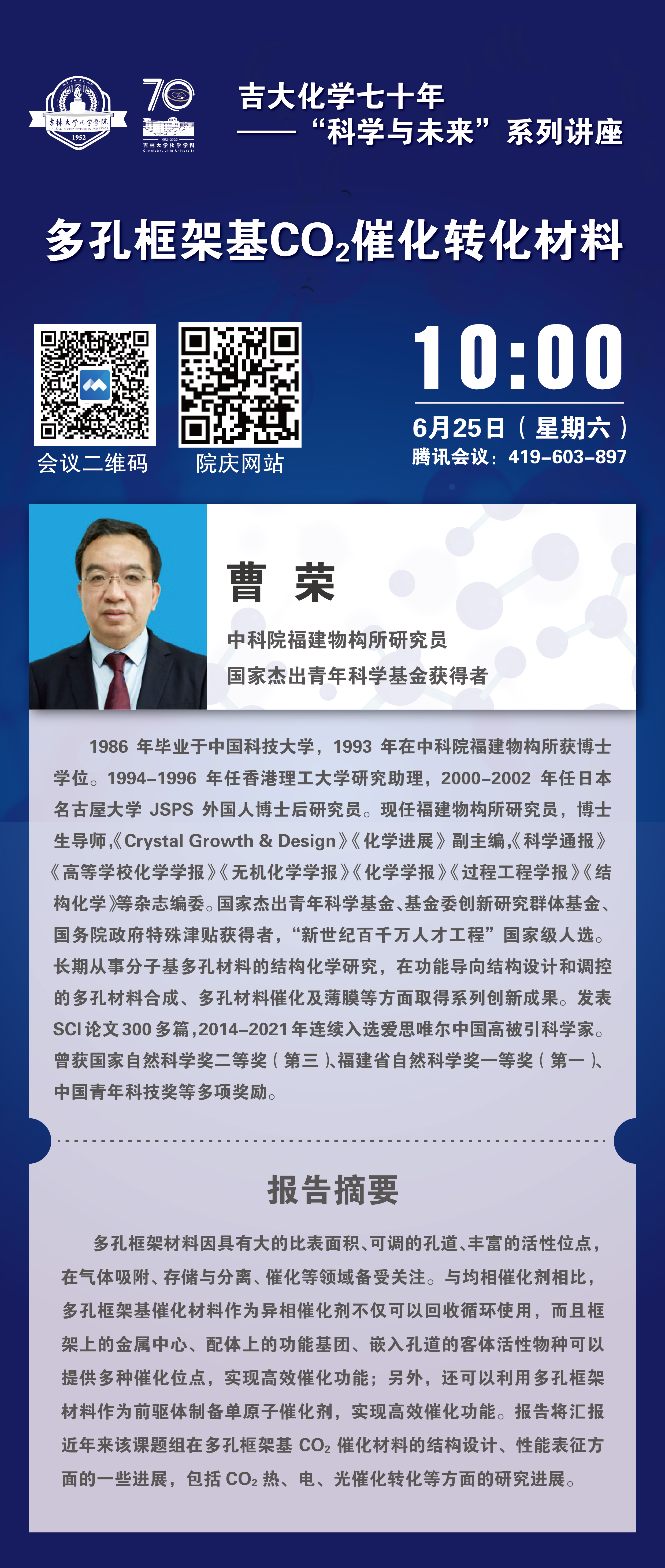 吉大化学70年院庆系列活动——科学与未来系列讲座:多孔框架基CO2催化转化材料
