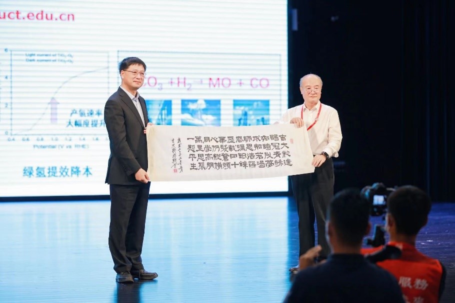 校长张希出席并向段雪院士颁发“吉大化学七十年——科学与未来系列讲座”纪念牌。