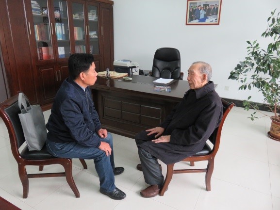 图:刘学铭(左)与徐如人院士交流