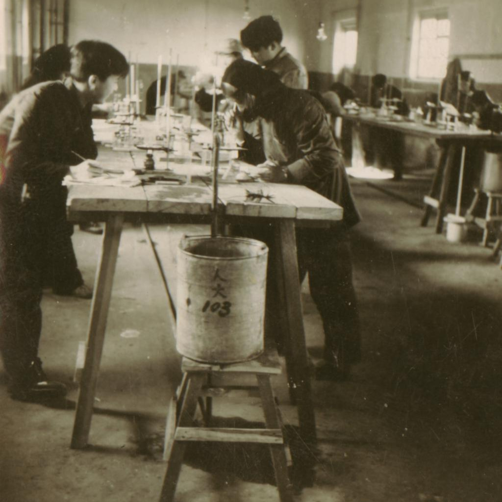 接下来,急需解决的是实验室的场所与最基本的实验设备,以及如何按照苏联教学大纲要求开设出无机化学实验课。开始时,连实验场地与设施、最基本的玻璃仪器与化学实验药品、实验设备、教材、图书资料等都不具备。这成为当时阻碍在我们面前的一道道难关,需要我们去突破,去想办法逐个解决。最开始是实验场所,当时我们六个担任实验教学的助教与几位工人师傅在关老师的指导下,首先整理出了灰楼后面的地下室,作为学生的实验室,整理后的实验室中,既没有实验台,也没有煤气管道,甚至连上、下水管道都没有,而这些设施是学生做无机化学实验必须具备的基本条件。